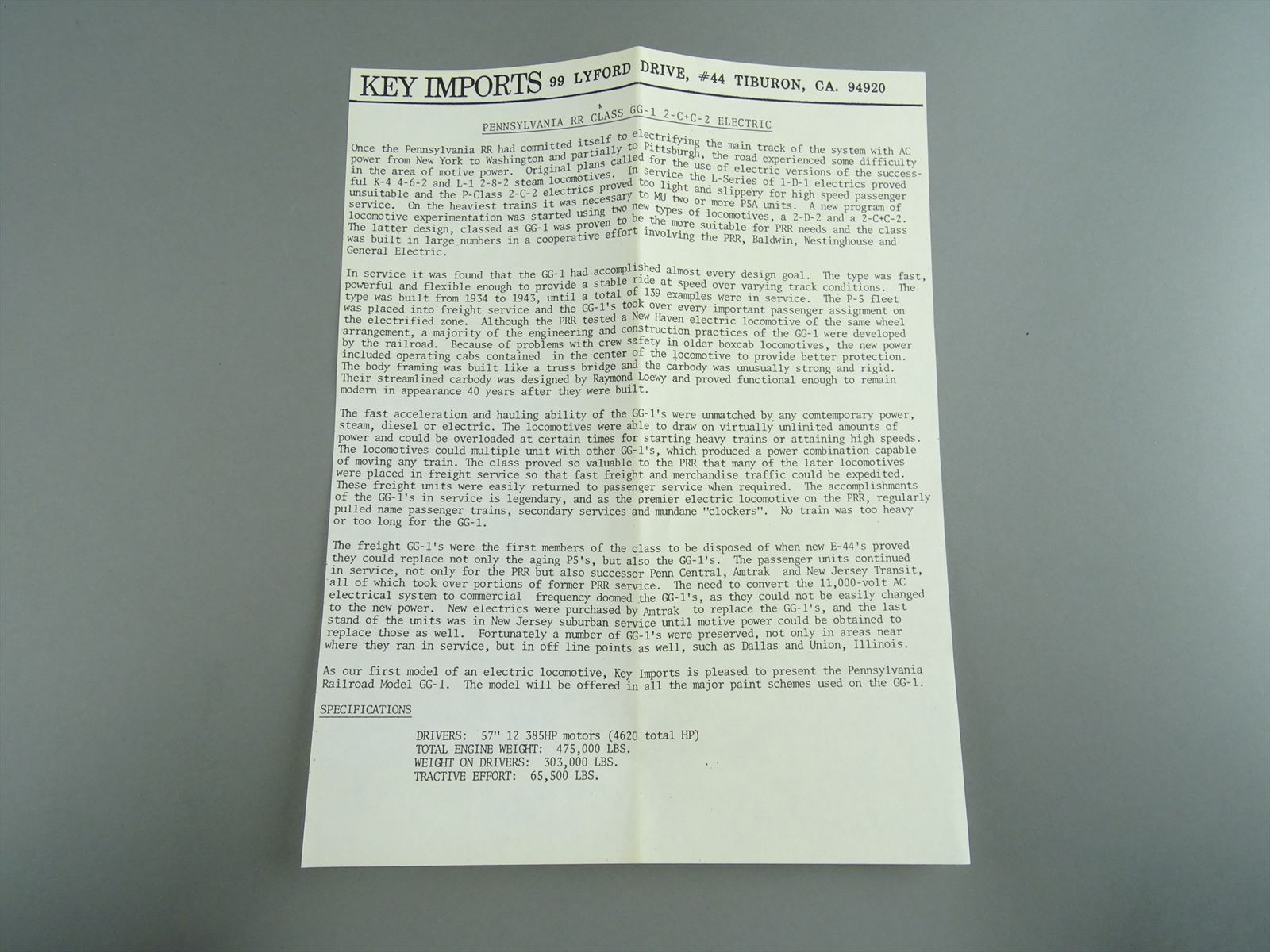 HO Brass Model - Key PRR Pennsylvania GG-1 Electric #4935 - Brunswick Green Multi Stripe - 1985 - F/P