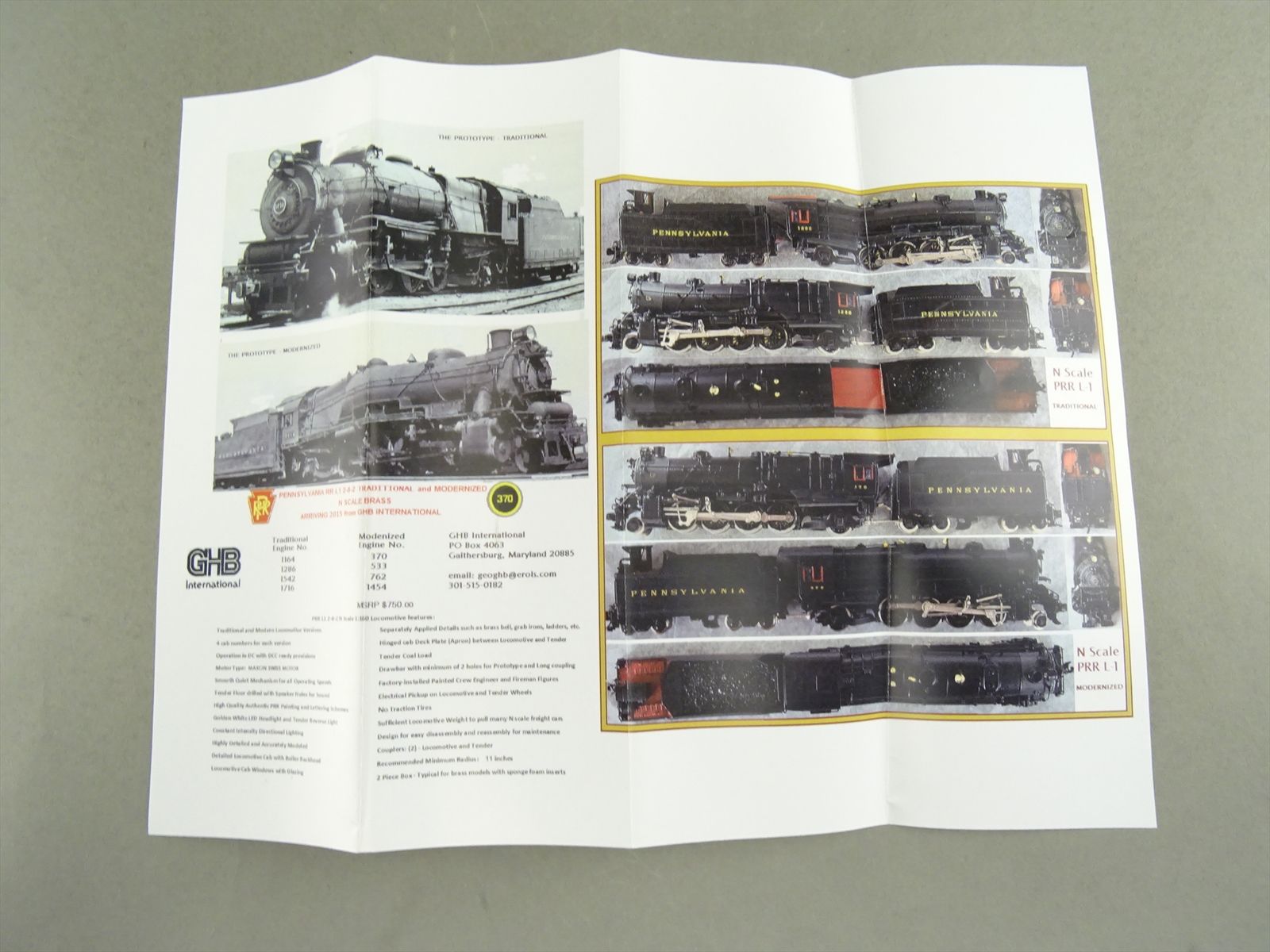 N Brass Model - GHB International PRR L-1 2-8-2 Mikado Modernized Version #370