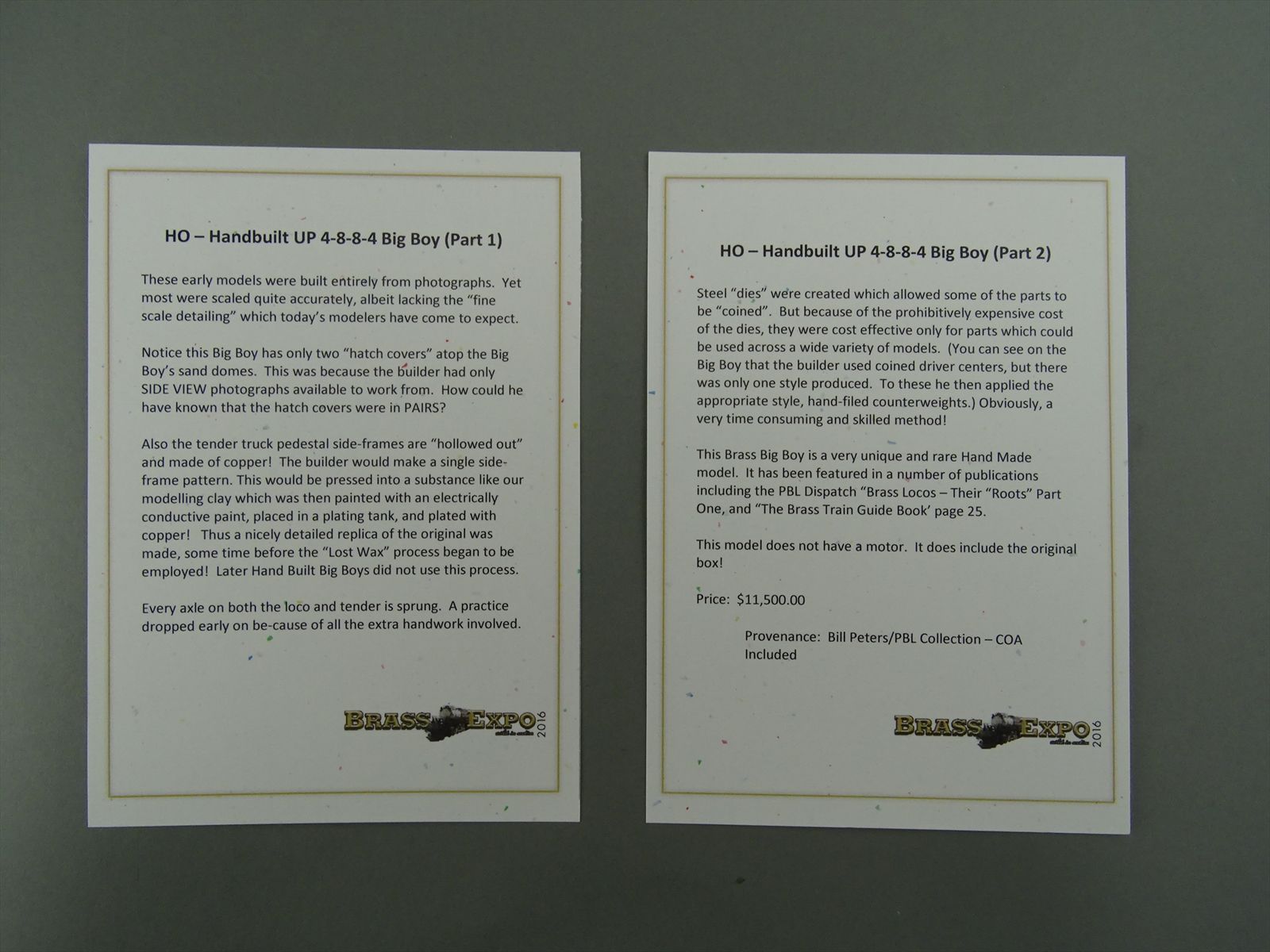 - This model was displayed in our Museum at the 2016 Brass Expo in Chicago! The story cards are included