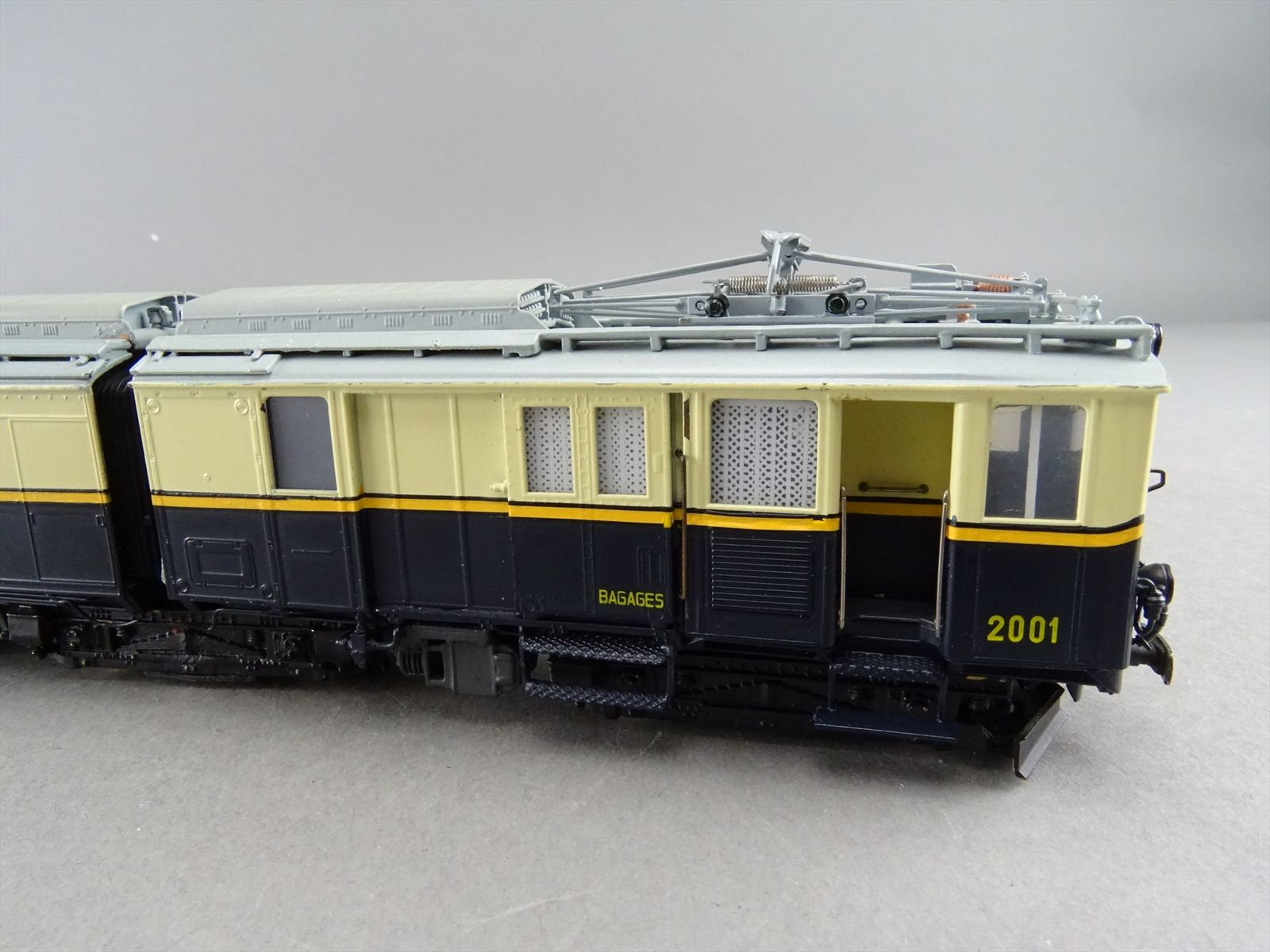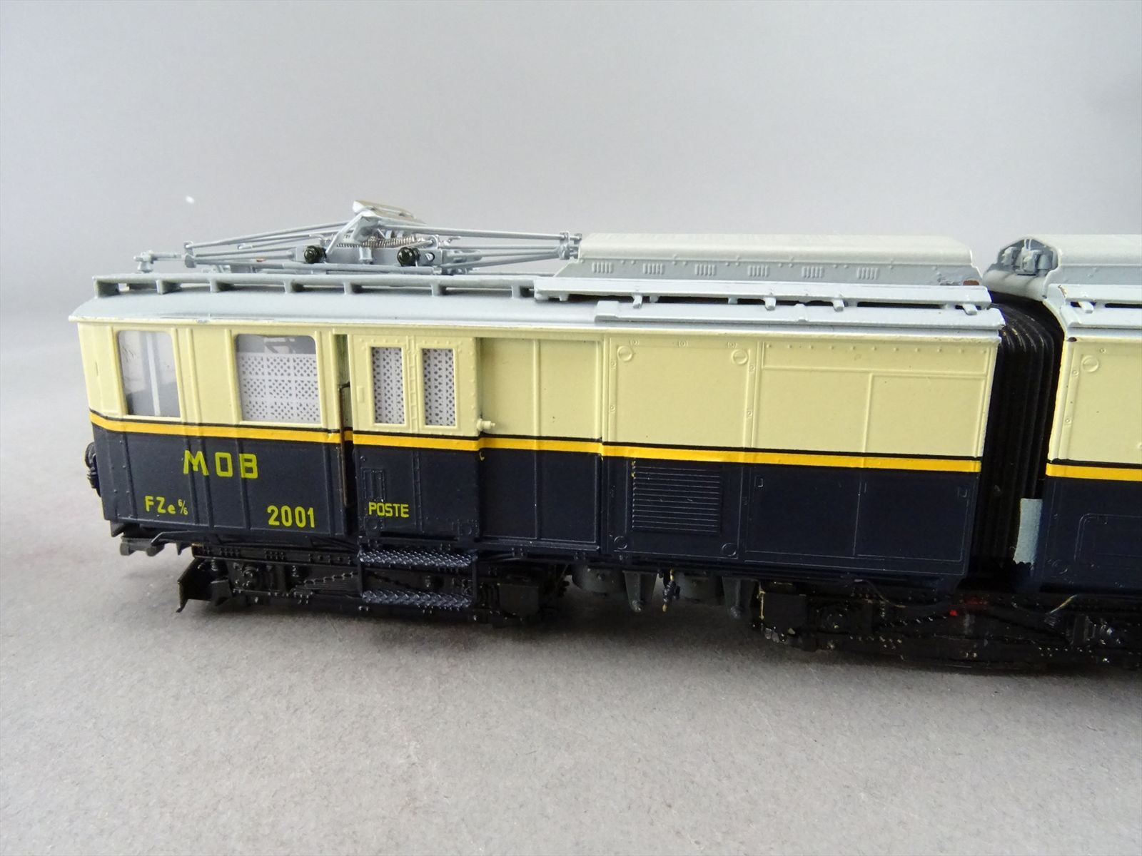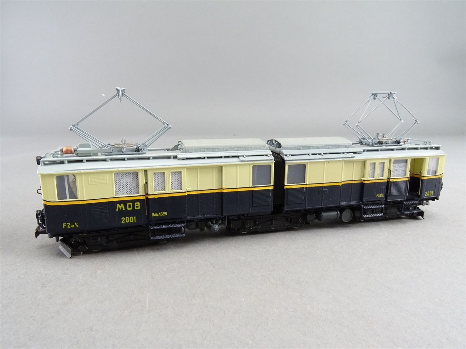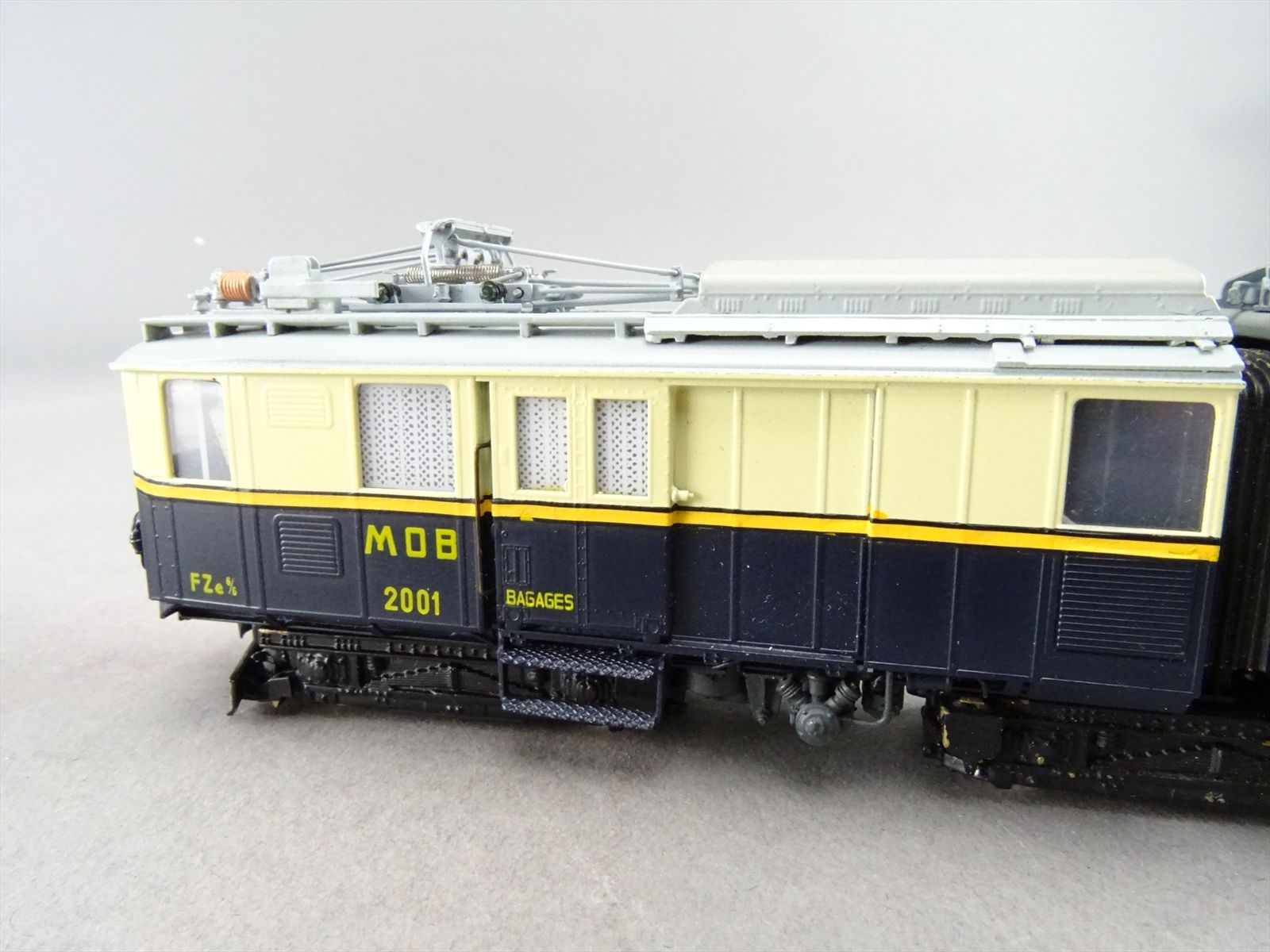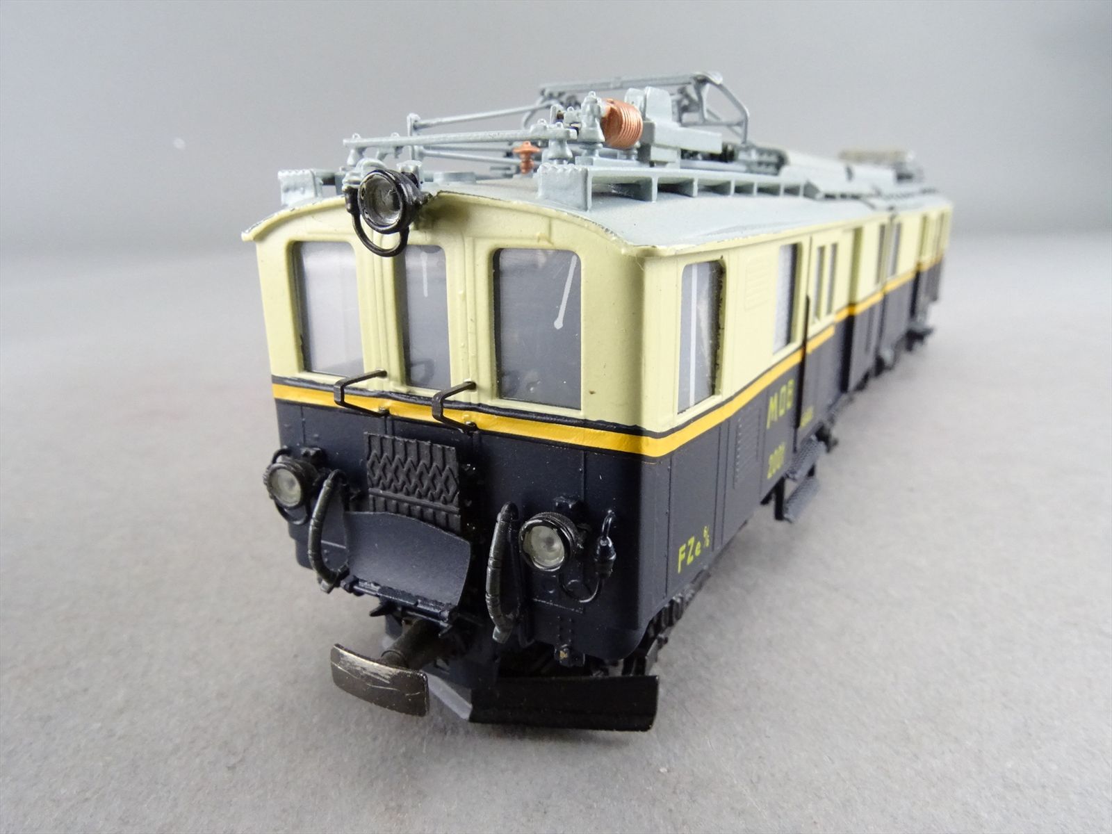 HOm Brass Model - Fulgurex MOB Montreux Oberland Bernois FZE 6/6 Electric Locomotive + 2 Passenger Cars #2001 / #11 - F/P + Light Weathering - 1983 Run