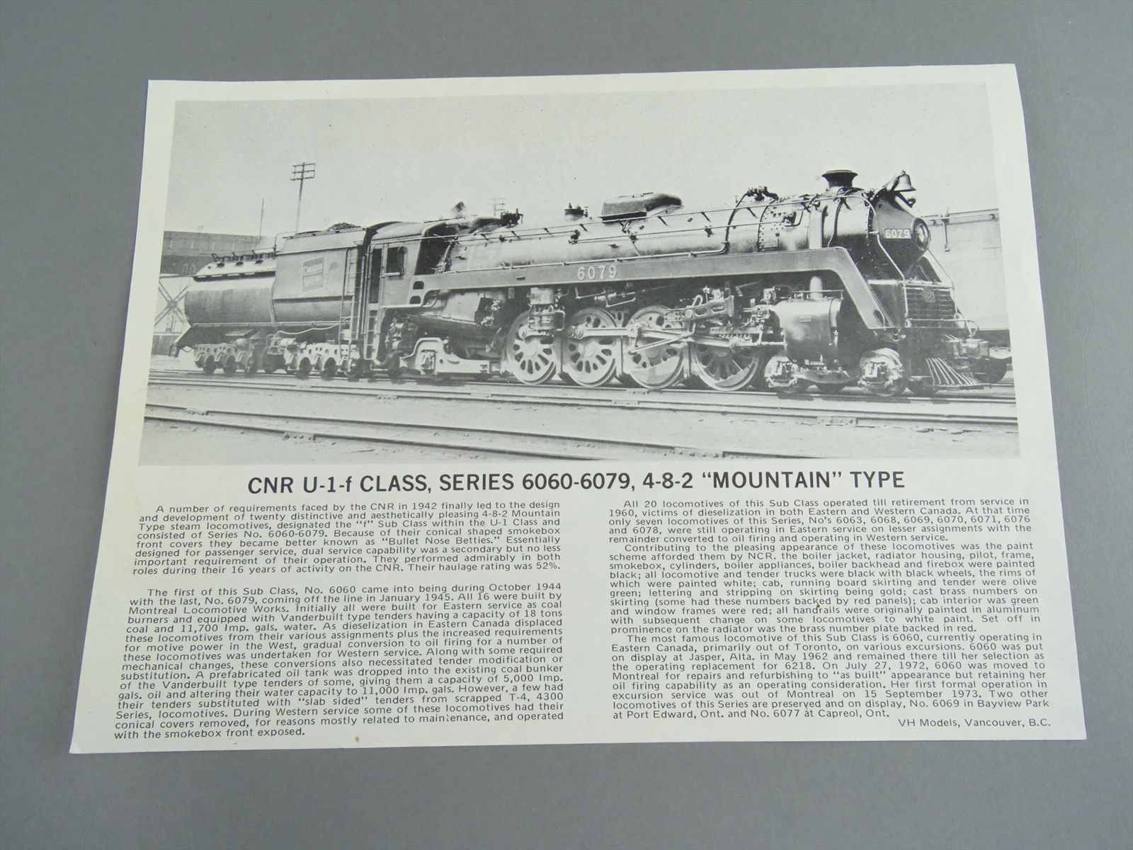 HO Brass Model - VH Van Hobbies CN CNR Canadian National 4-8-2 U-1f #6060 Bullet Nose - F/P