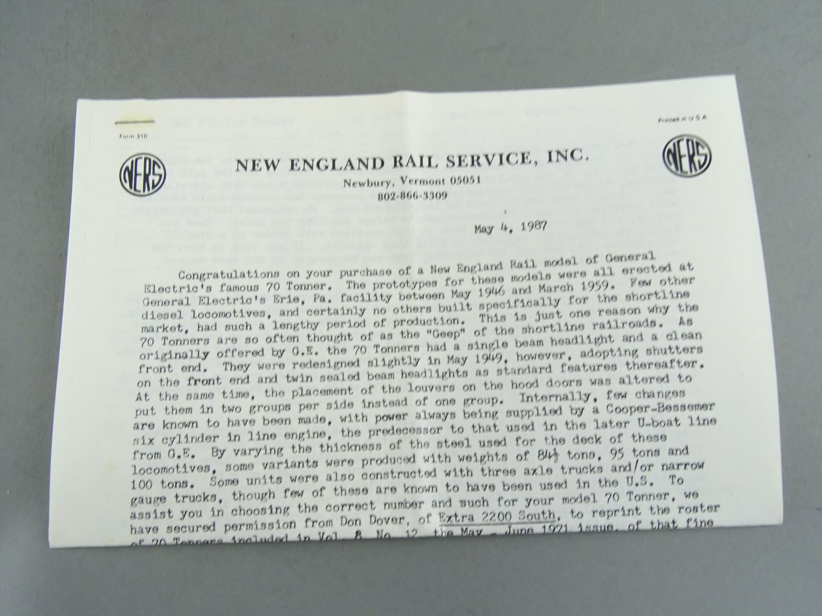 | Importer: | New England Rail Service |