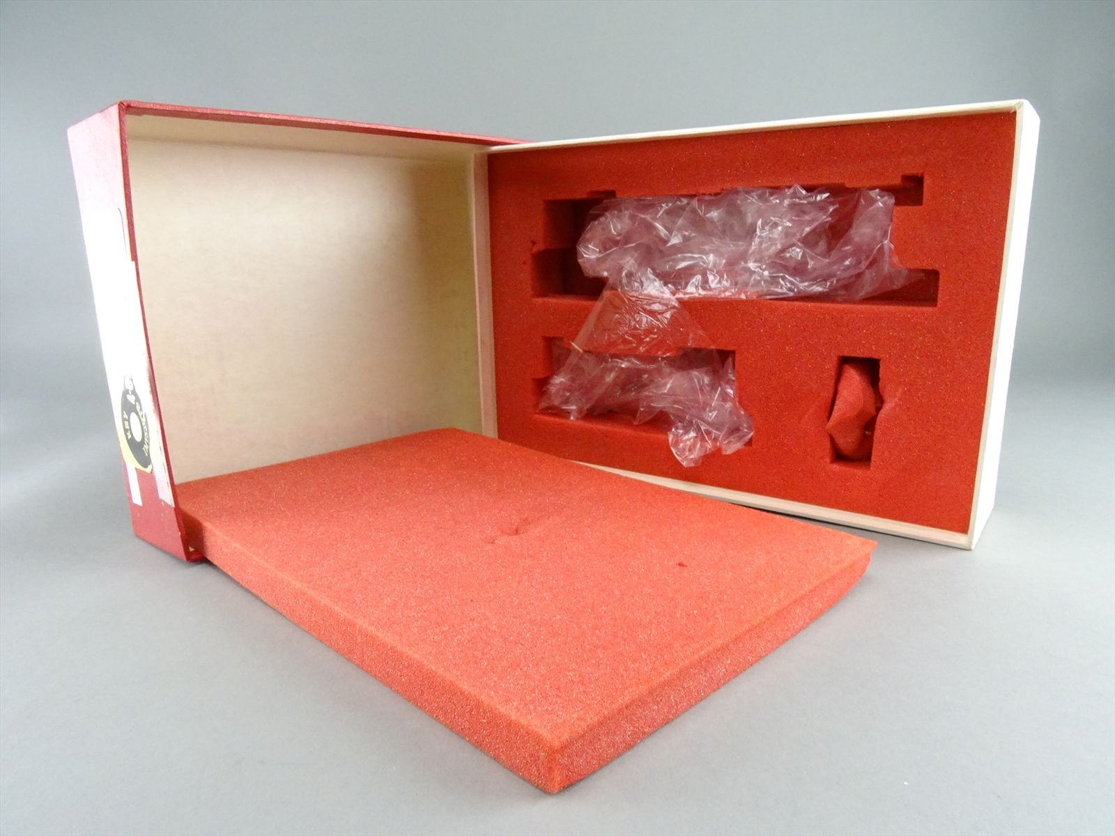 - The original box and foam are included. Tape on the label.