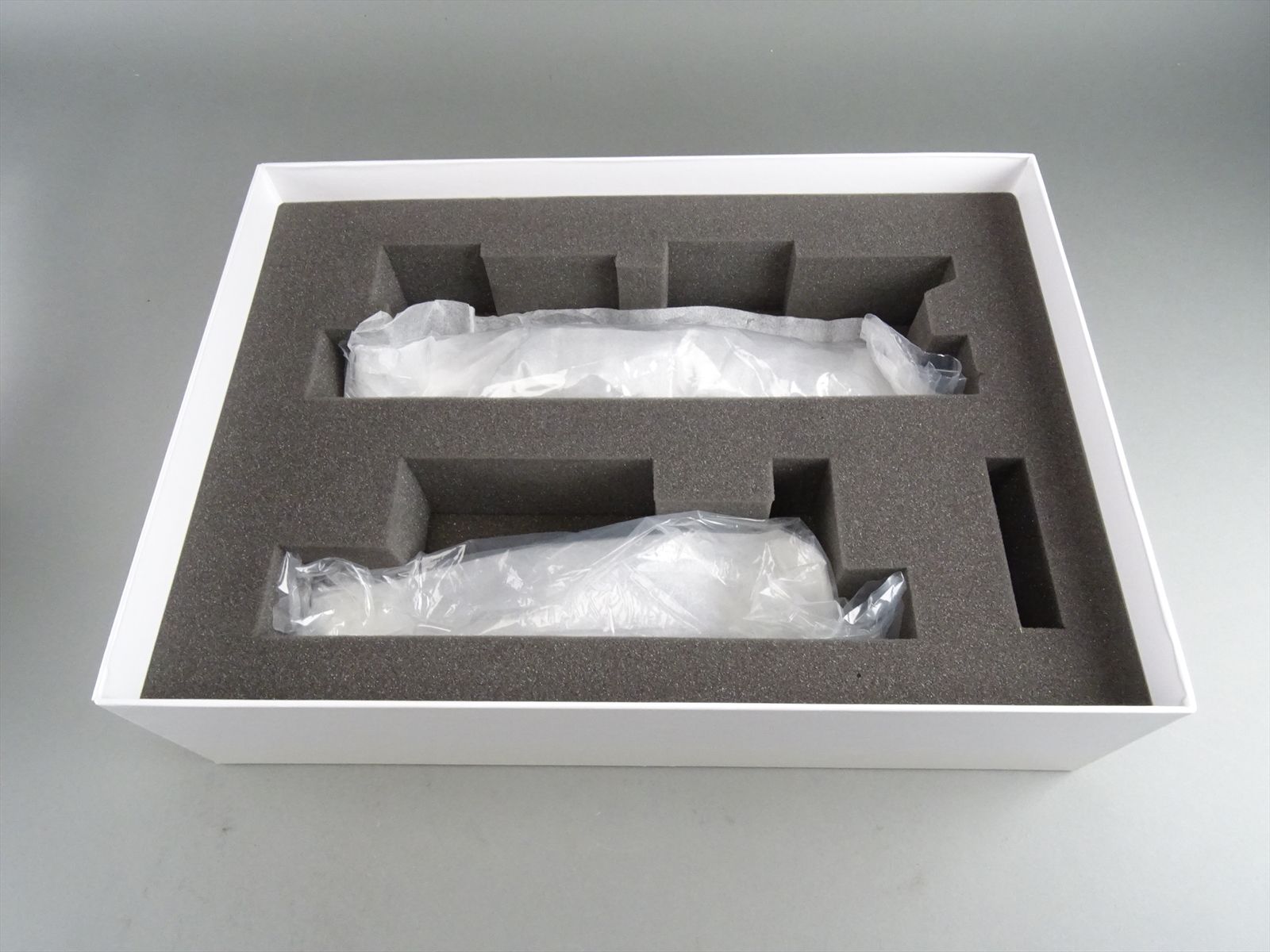 - The original box and foam are included.