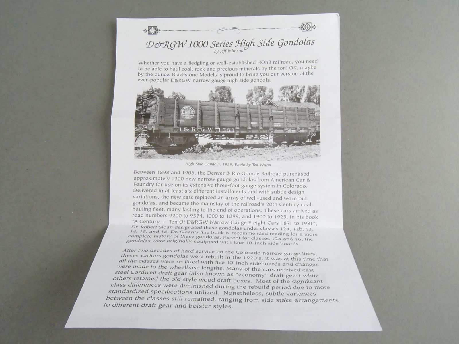 HOn3 Scale Model - Blackstone PN B340410W D&RGW #1077 - Weathered - High Side Gondola