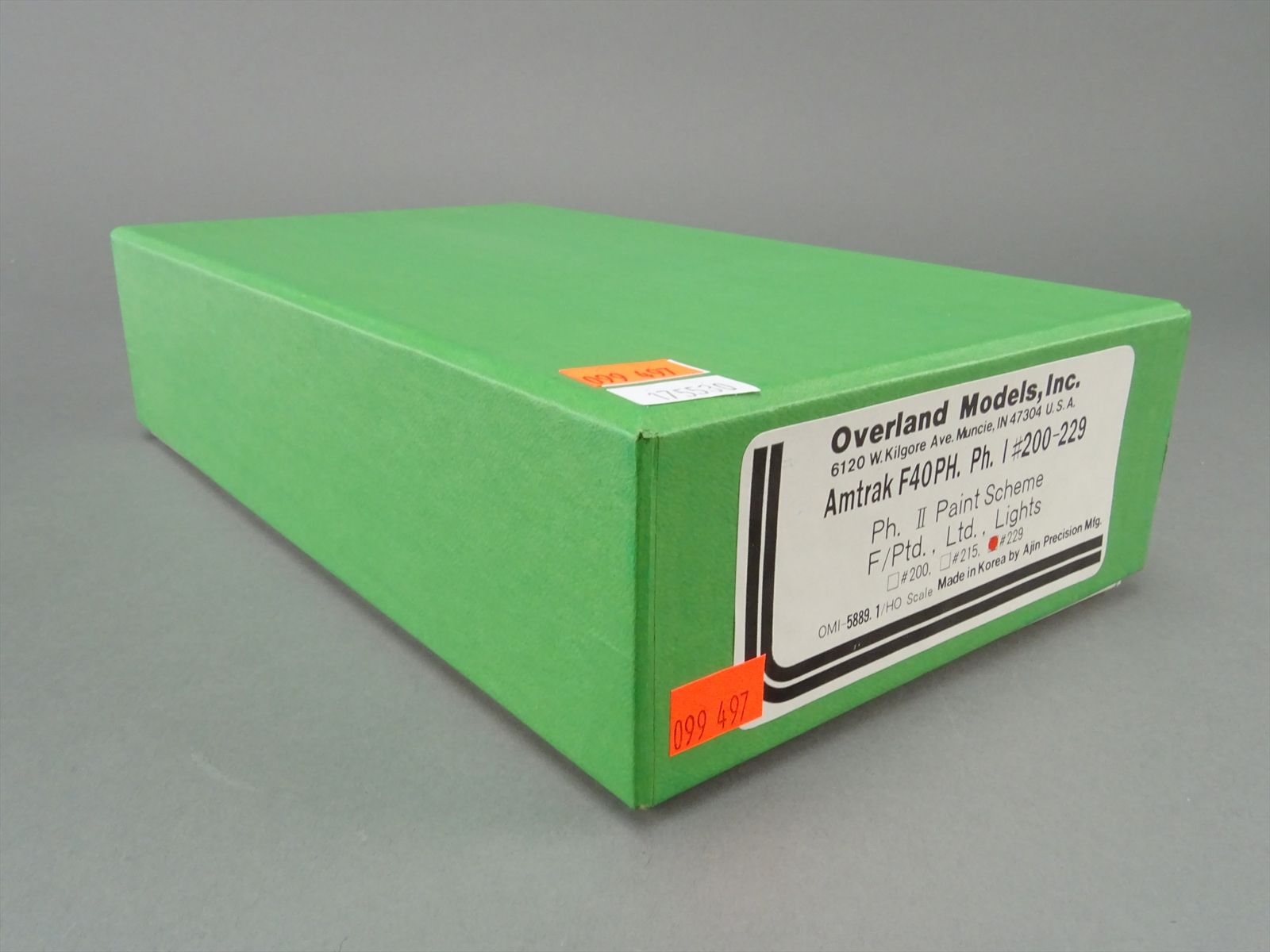 | Notes: | FACTORY PAINTED - #200 / #215 / OR #229 - PHASE II SCHEME - AMTRAK - F UNIT - OMI-5889.1 |