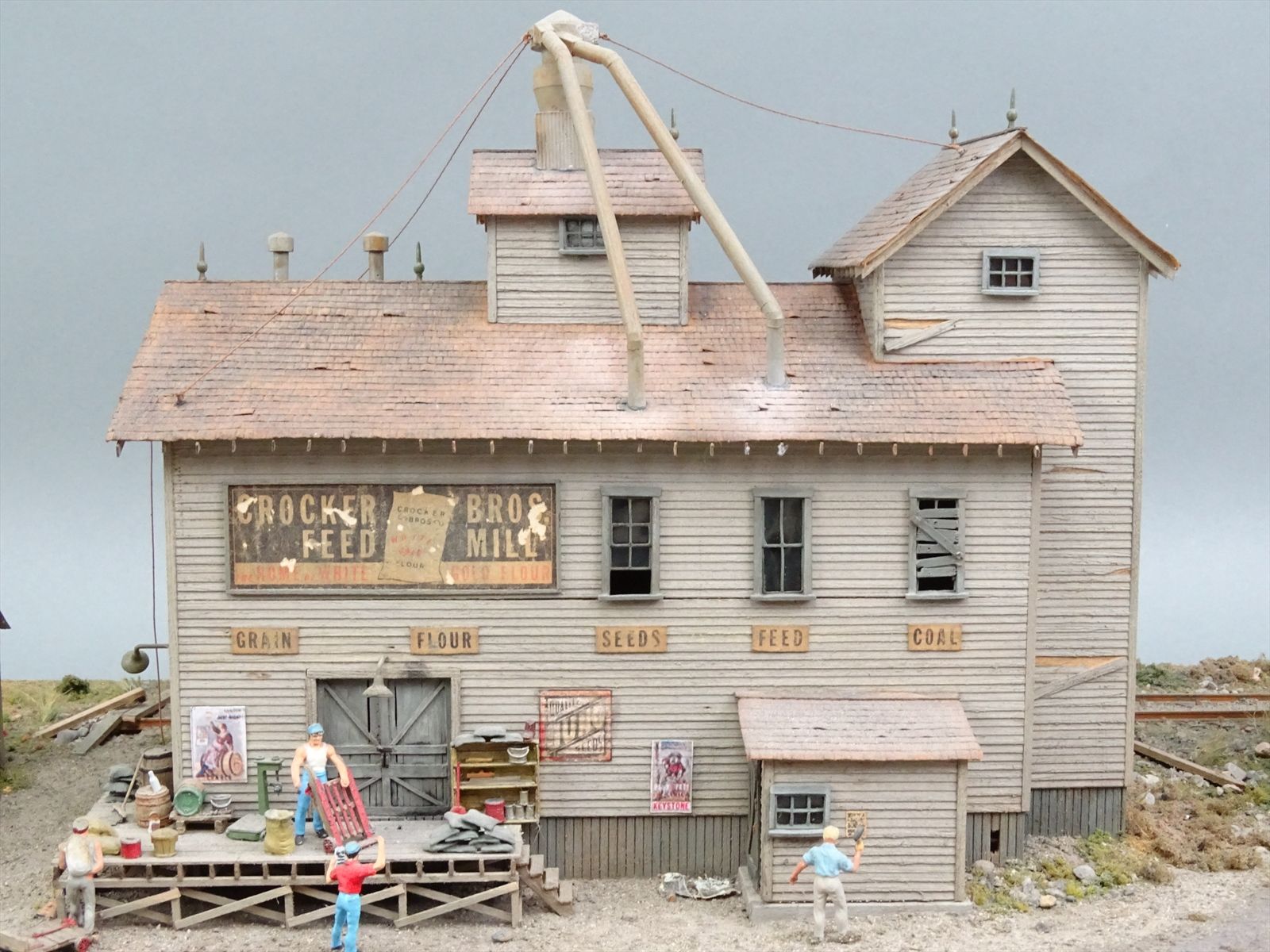 HO 1:87 FSM 23 x 11 Diorama - Crocker Bros Feed Mill - Built Up - Amazing Detail - Must See