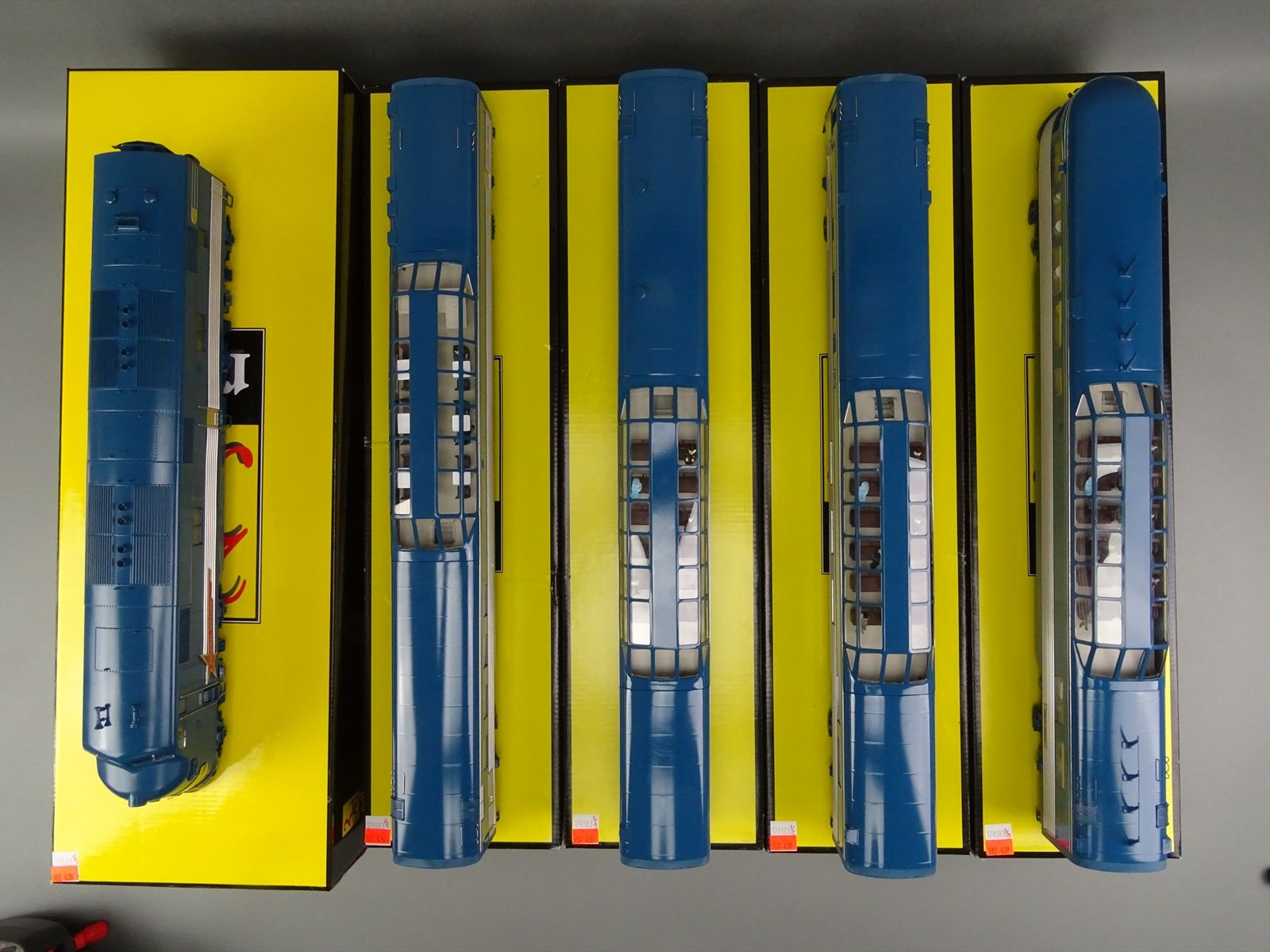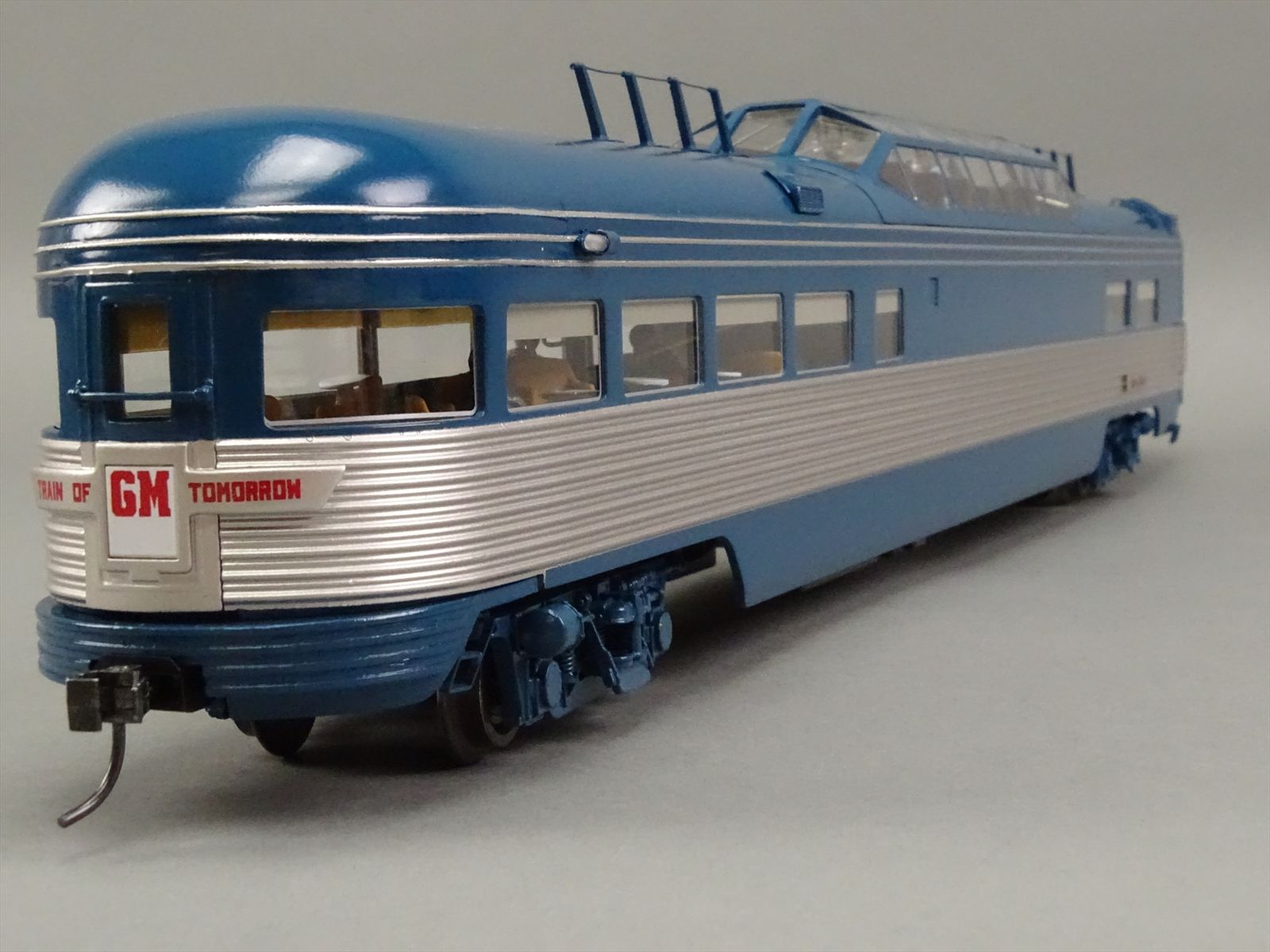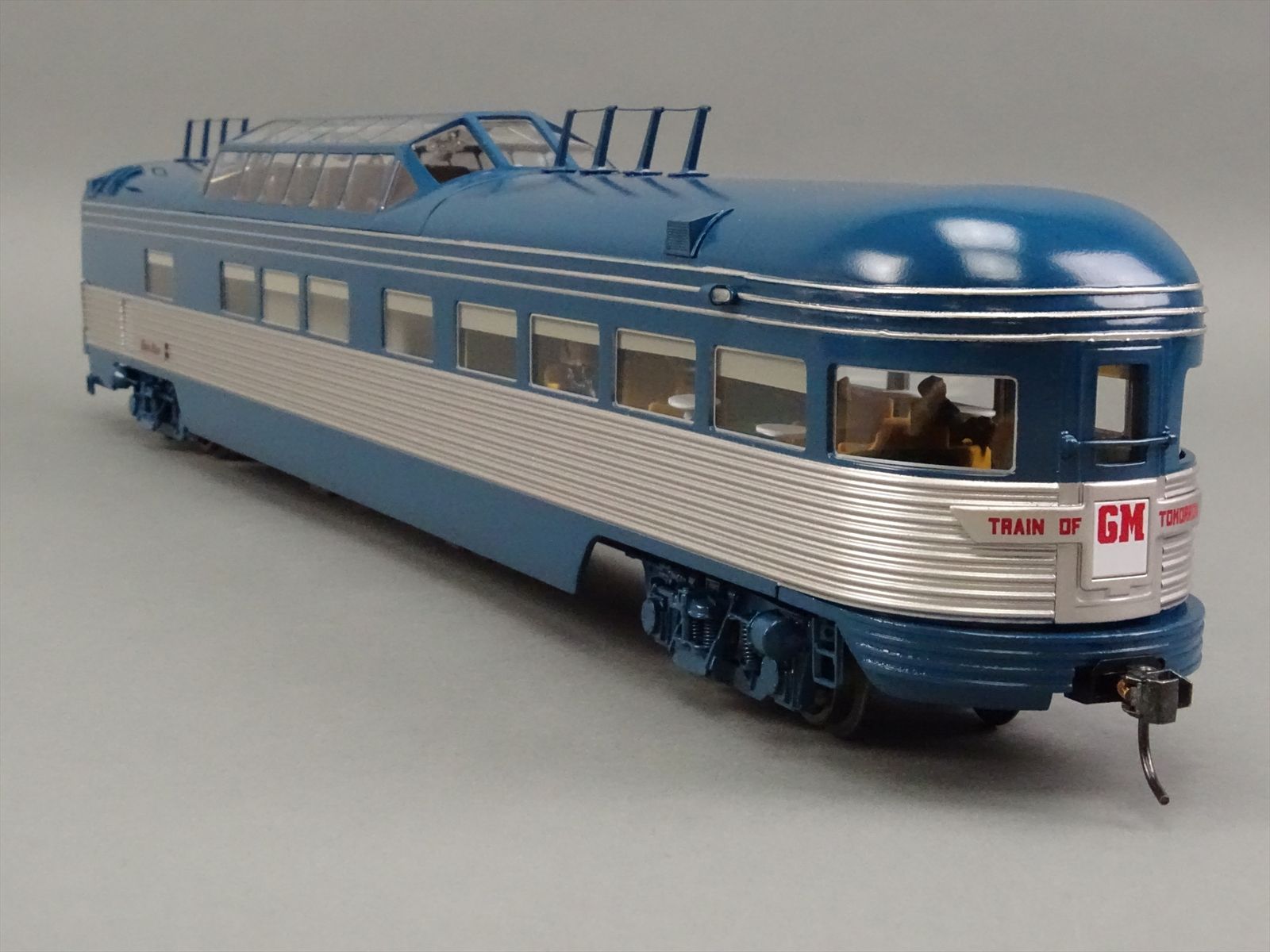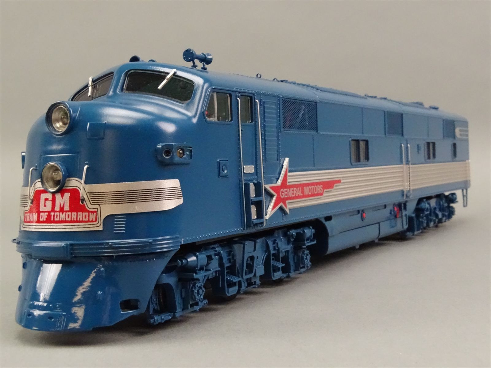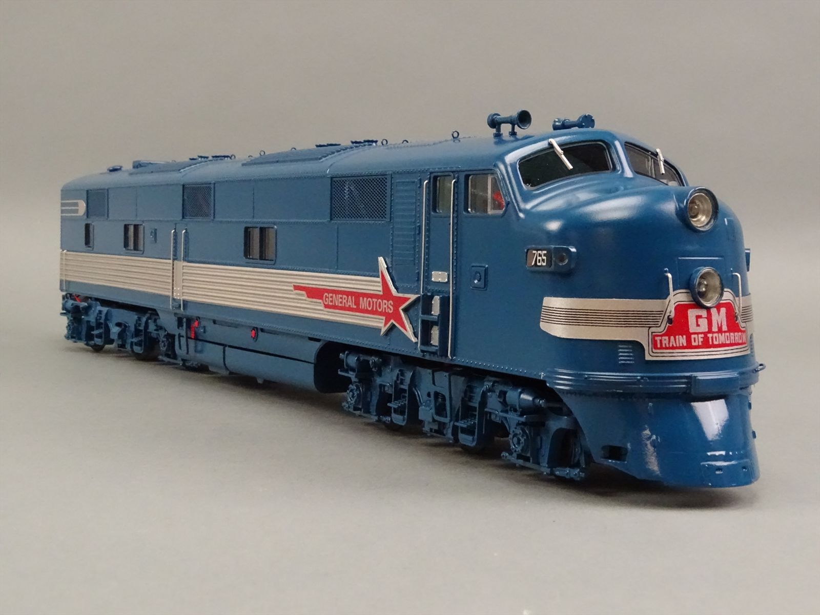 | Notes: | FACTORY PAINTED - GENERAL MOTORS TRAIN OF TOMORROW E7A + 4 PASSENGER CARS - INCLUDES: SLEEPER DREAM CLOUD - LOUNGE STAR DUST - DINER SKY VIEW - OBSERVATION MOON GLOW - SUPERB OVERALL DETAIL - OPERATING LIGHTS - WINDOW GLAZING - INTERIOR DETAIL - FIGURES THROUGHOUT |