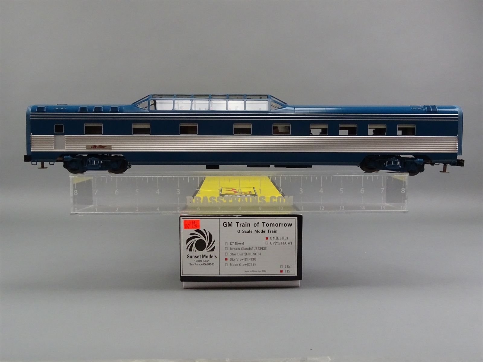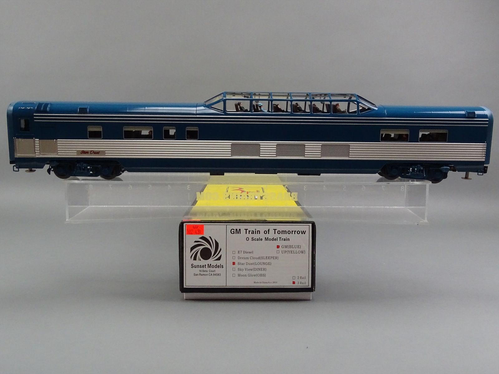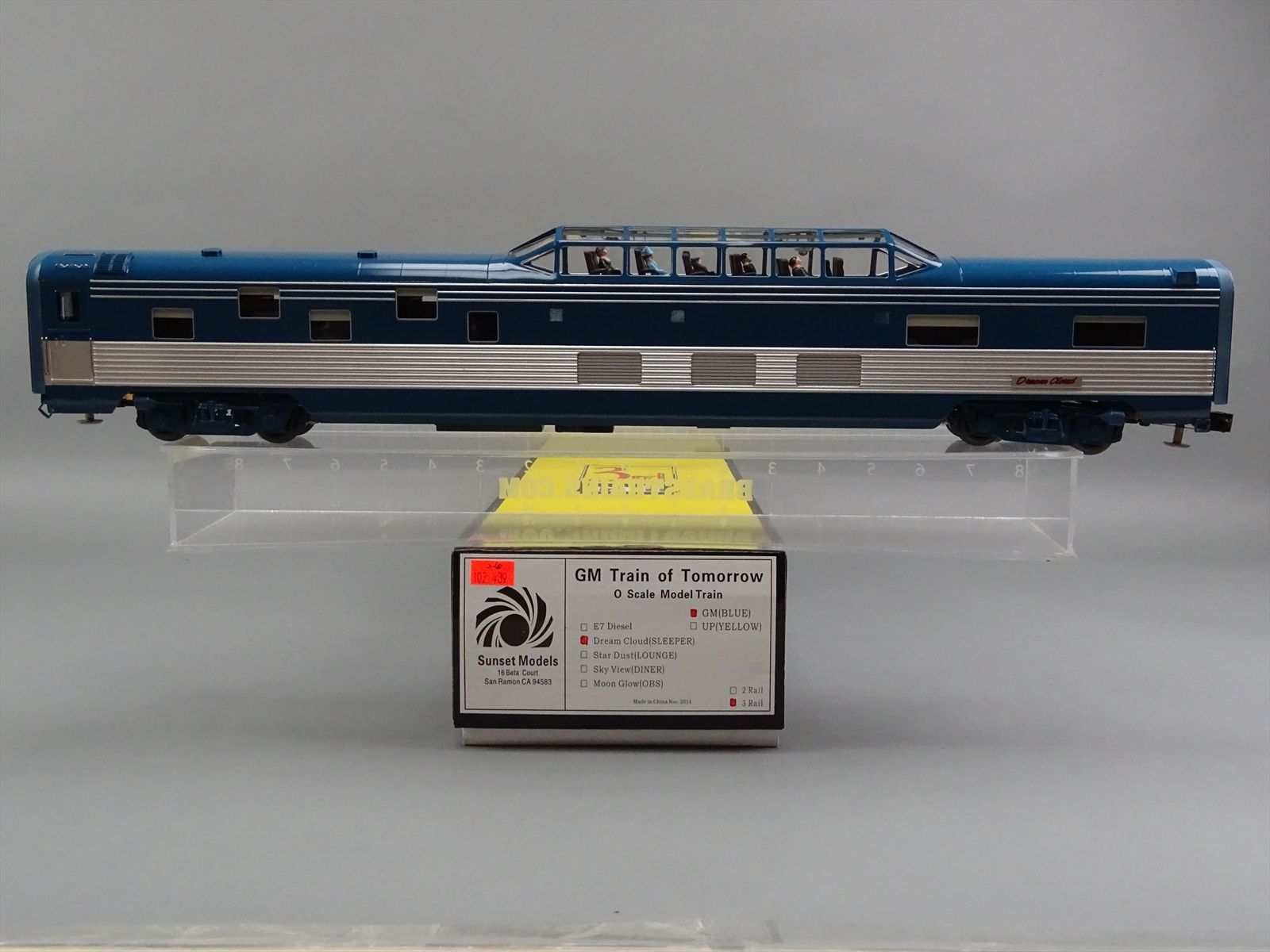 - Includes: E7A #765 (the classification board on the firemans's side is missing) - Sleeper "Dream Cloud" - Lounge "Star Dust" - Diner "Sky View" - Observation "Moon Glow"