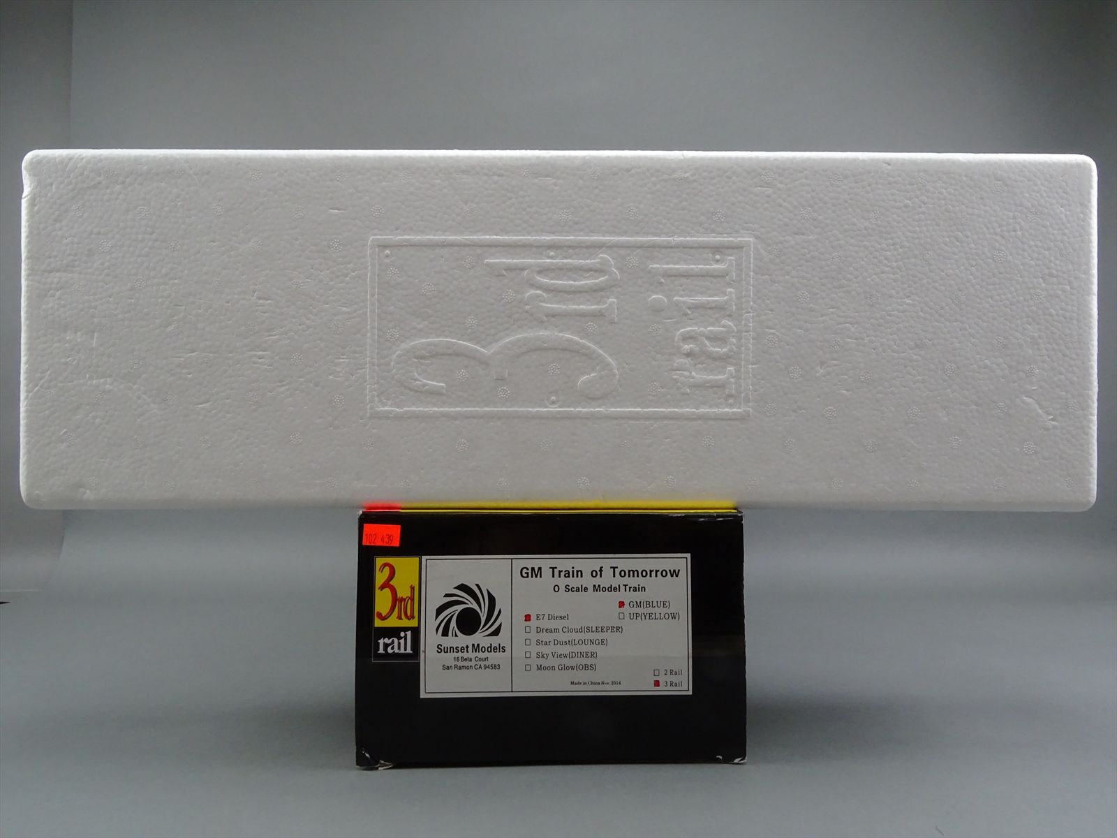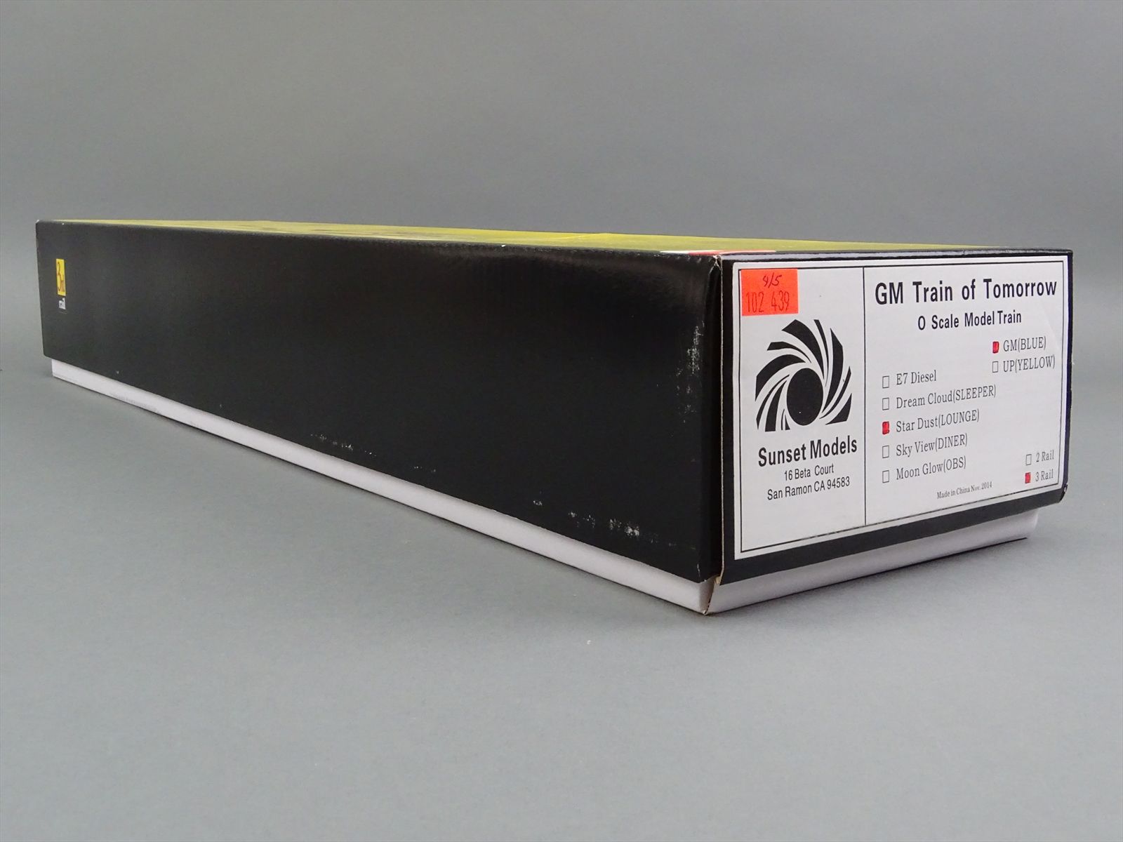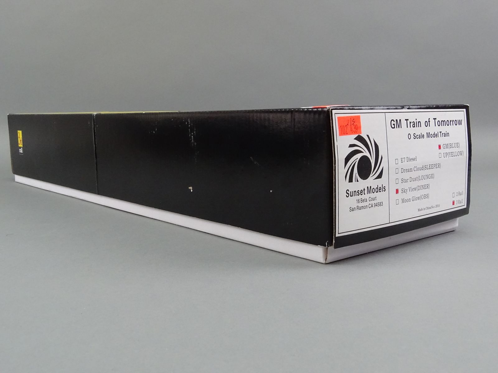 - Includes: E7A #765 (the classification board on the firemans's side is missing) - Sleeper "Dream Cloud" - Lounge "Star Dust" - Diner "Sky View" - Observation "Moon Glow"