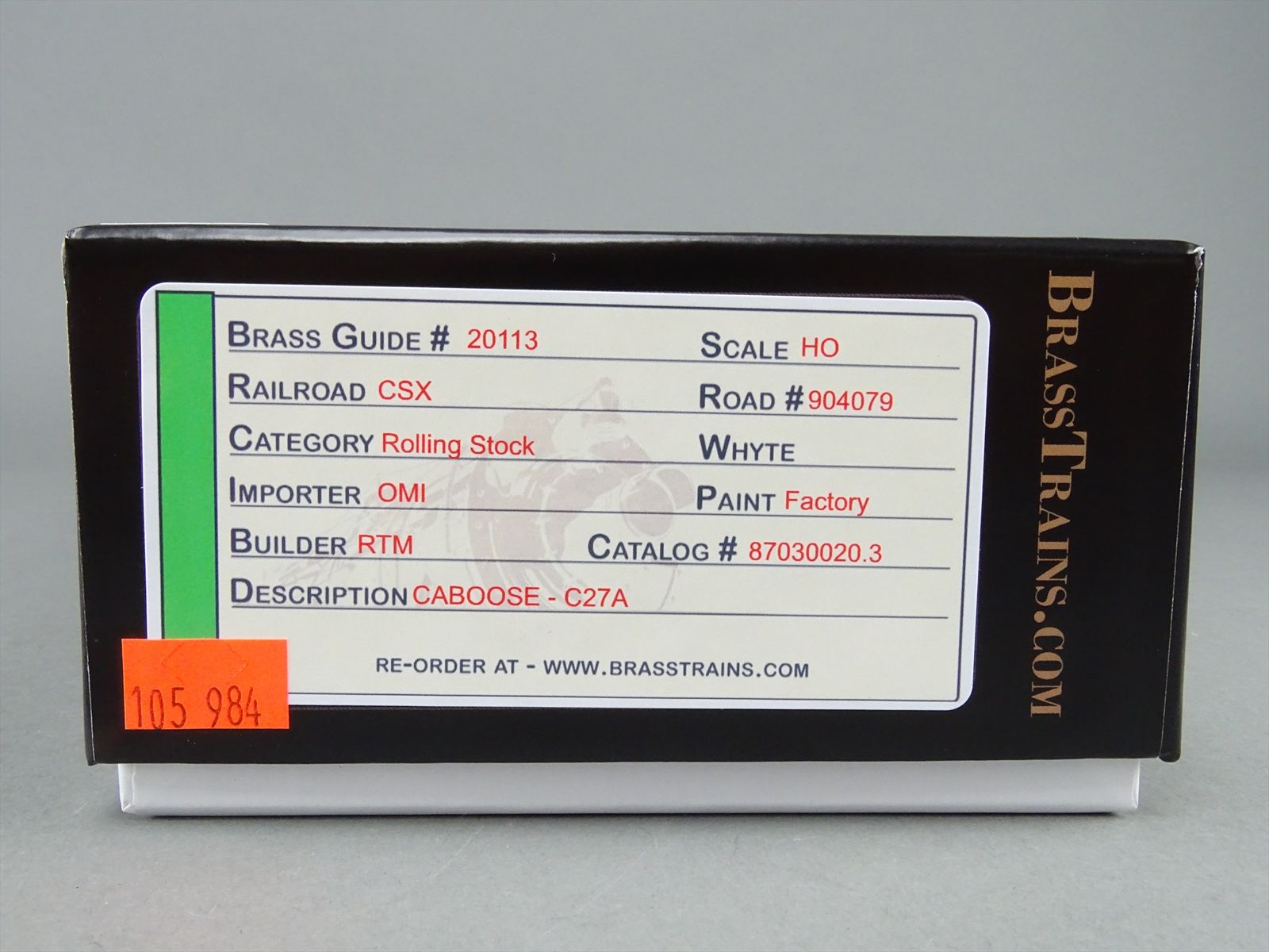 HO Brass Model - OMI 087030020.3 CSX Operation Lifesaver Caboose #904079 - F/P - Real-Tech Models - BT Replacement Box