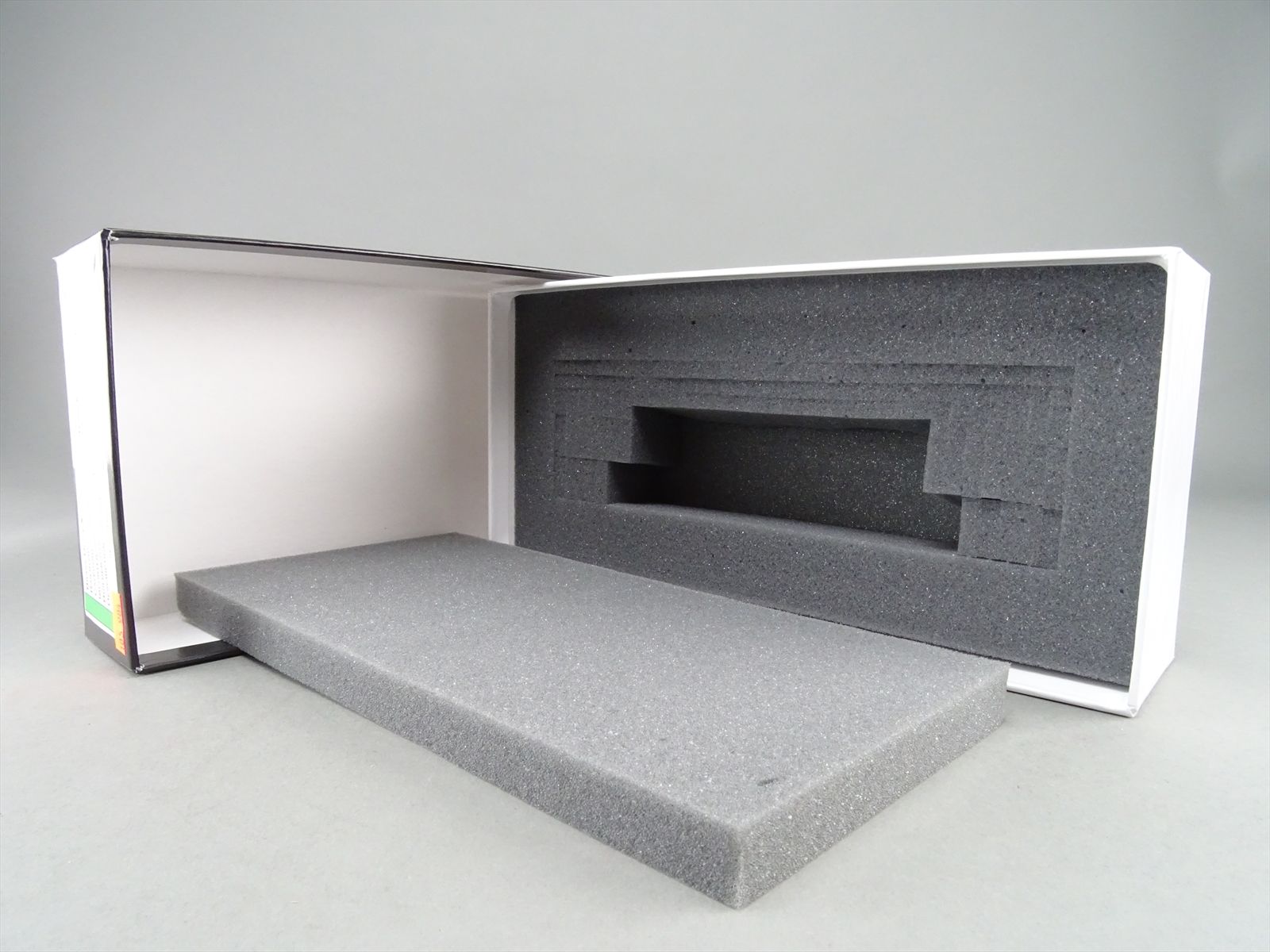 - The original box and foam are included.