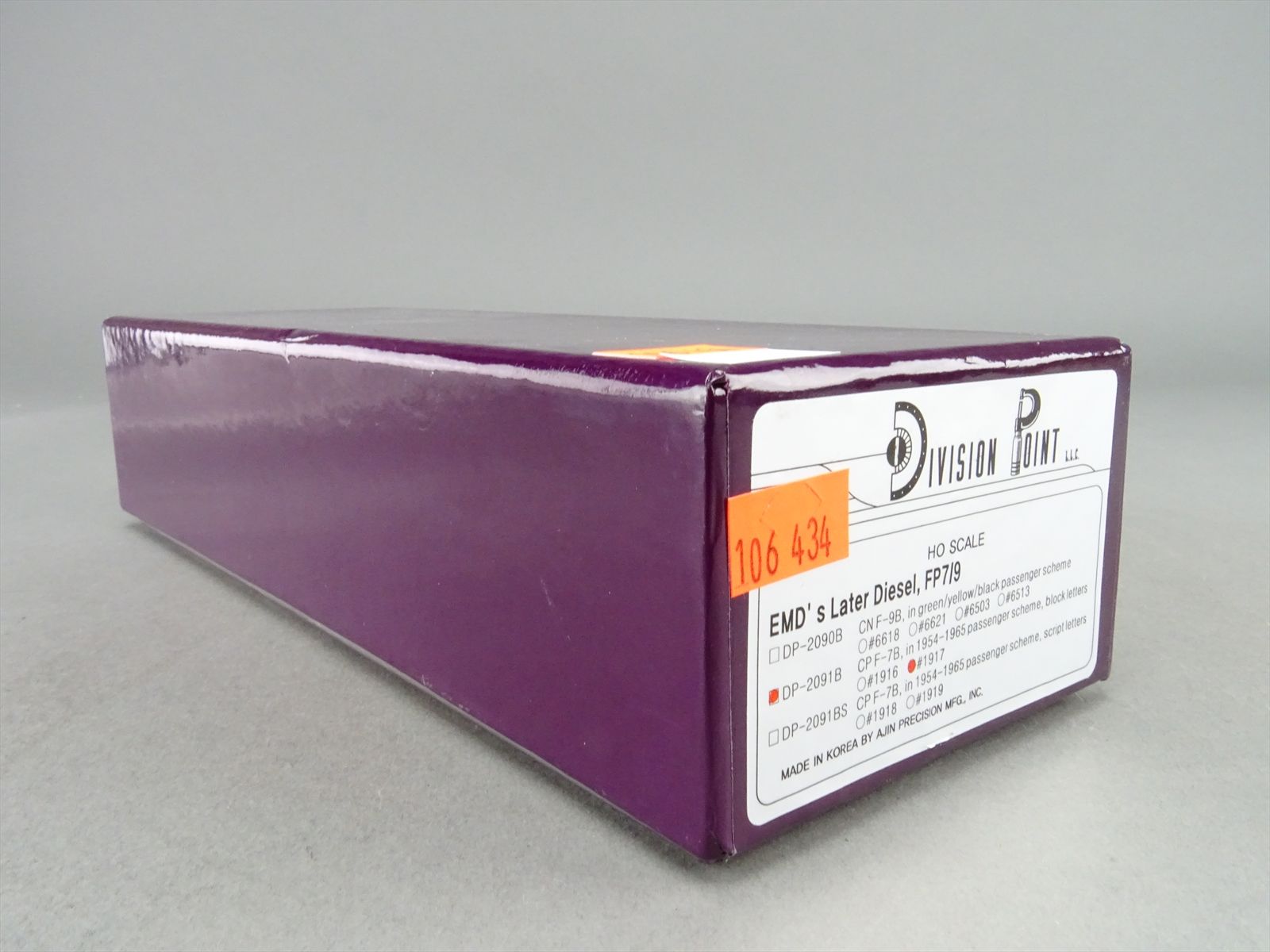 | Notes: | FACTORY PAINTED - F-9B - GRAY / TUSCAN PASSENGER SCHEME - BLOCK LETTERS - #1916 OR #1917 - CP - RUN 1 - DP-2091B |