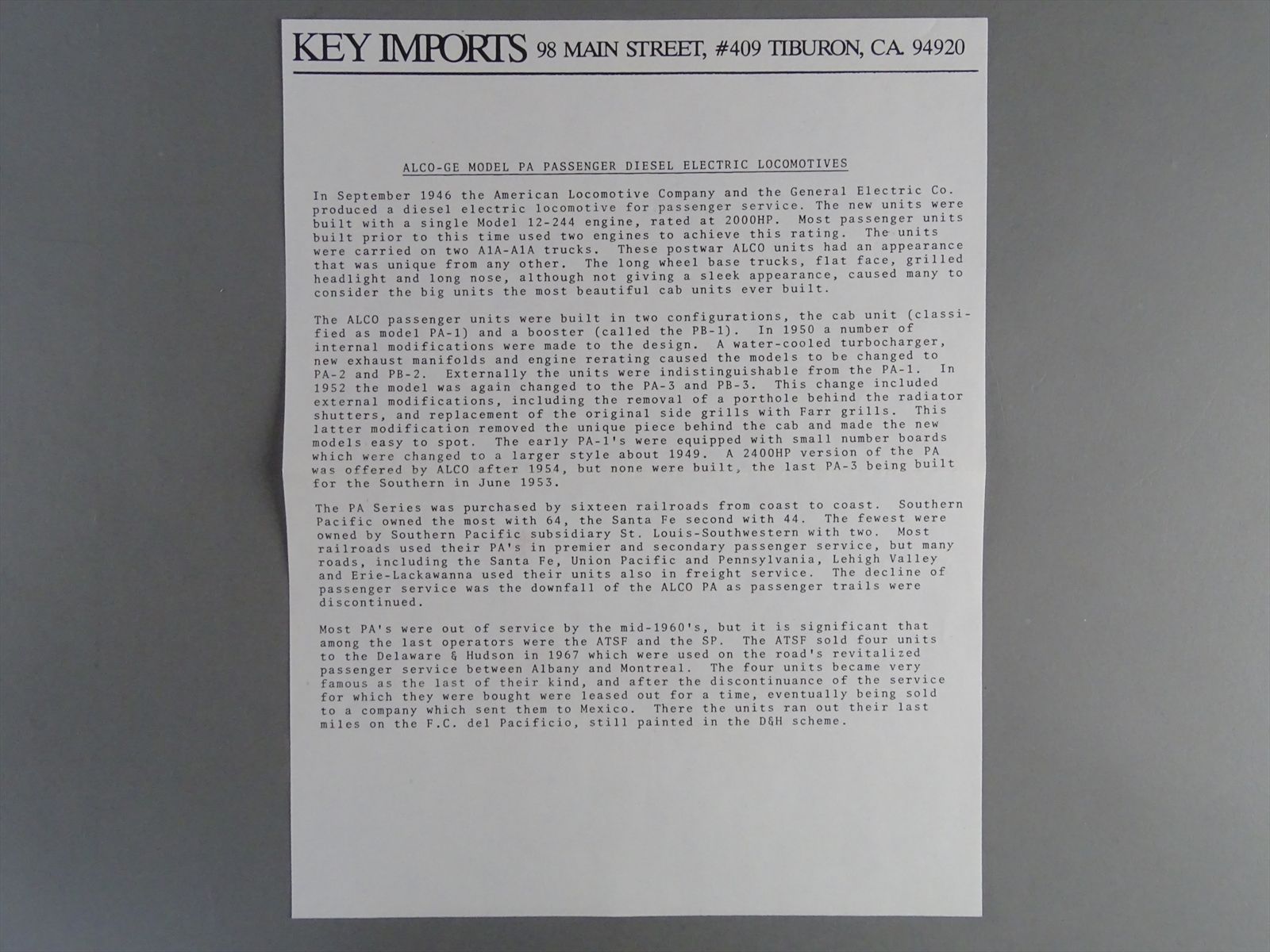 HO Brass Model - Key CS #83 D&RGW ALCO PA-1/2 PB-1/2 ABA A-B-A 3 Stripe Set #601 - F/P - Samhongsa