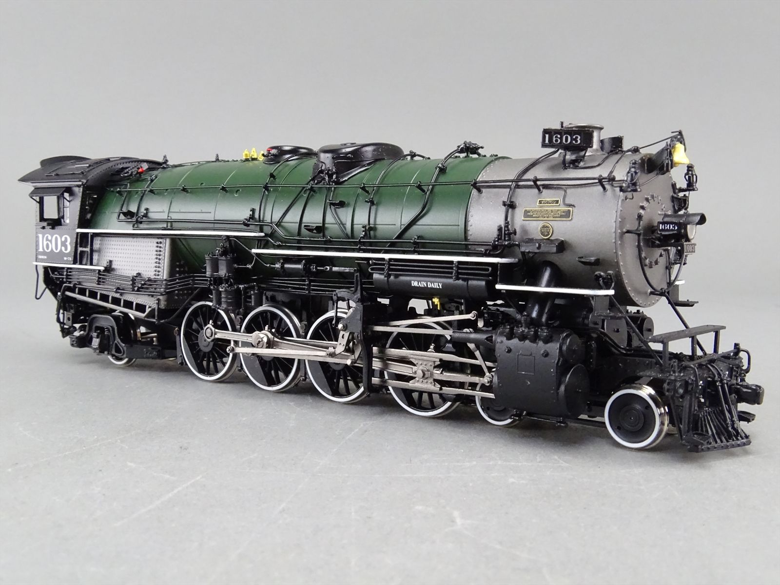 | Notes: | FACTORY PAINTED - #1603 - GREEN BOILER - LATE 30S, MULTI COLOR HERALD LETTERING, SPORT CAB, WORTHINGTON FWH, FLAT SMOKE BOX FRONT |