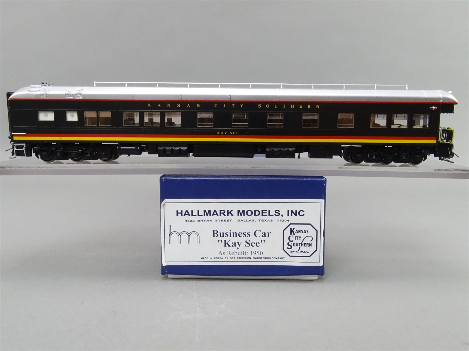 HO Brass Model - Hallmark KCS Kansas City Southern Business Car Kay See 1950 Version - F/P + Full Interior - OCS