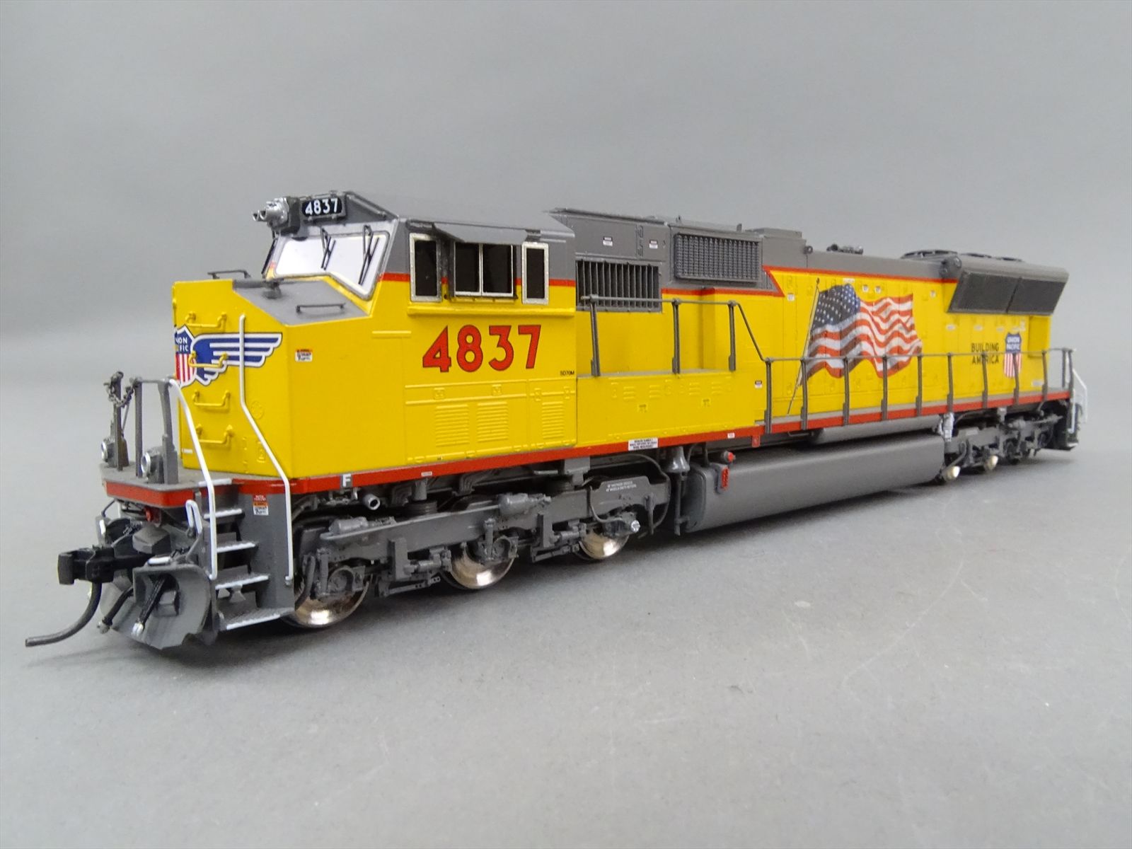 | Notes: | FACTORY PAINTED - W/ PHASE II CAB - VARIOUS NUMBERS BETWEEN #4837 - 4845 - YELLOW / GRAY - W/ WINGS / FLAG - BUILDING AMERICA - LIGHTS - DITCH LIGHTS - OMI-087010039.1 |