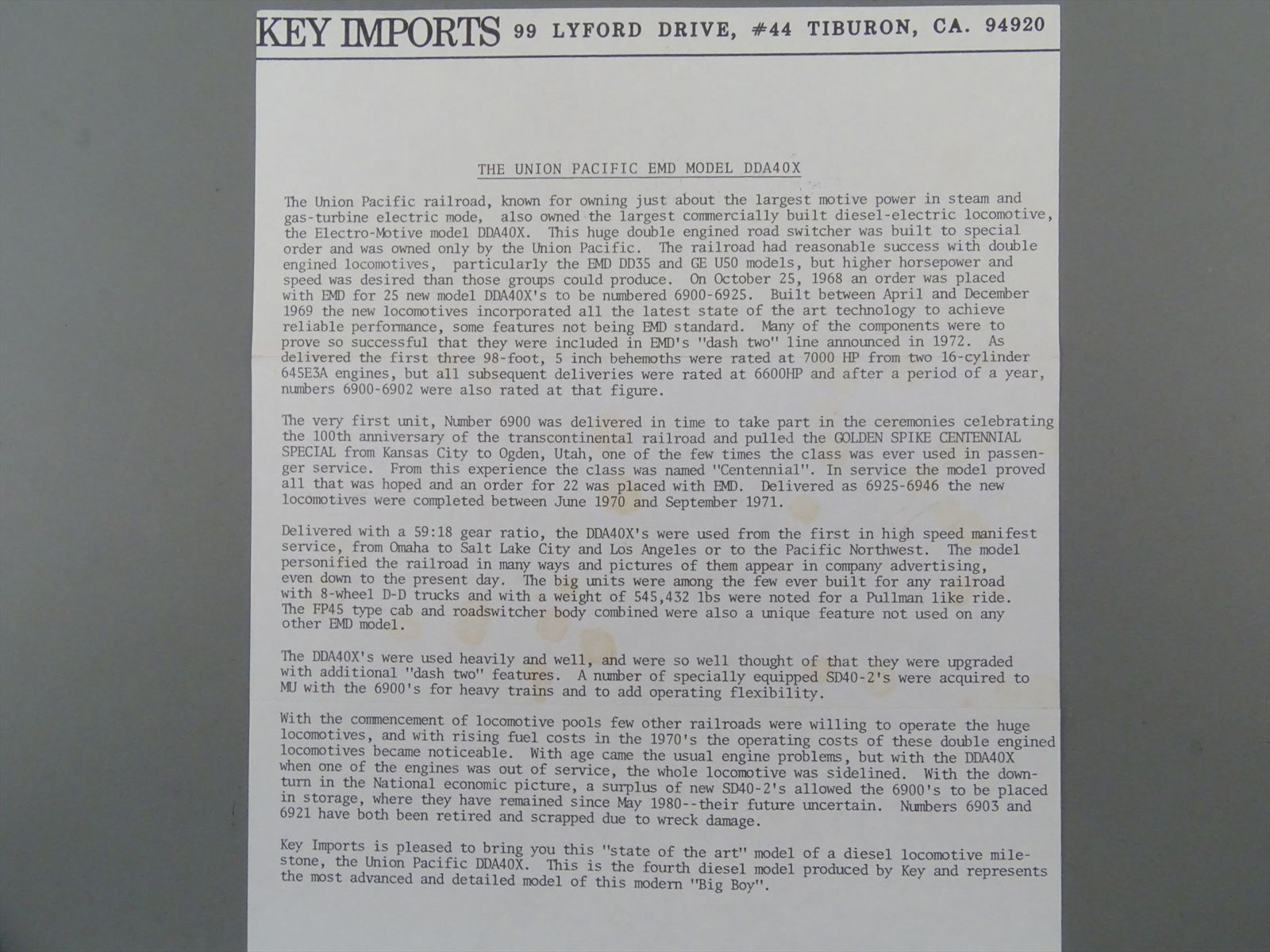 HO Brass Model - Key CS#16 UP Union Pacific DDA40X DD40AX 2nd Order #6925 - F/P - Samhongsa