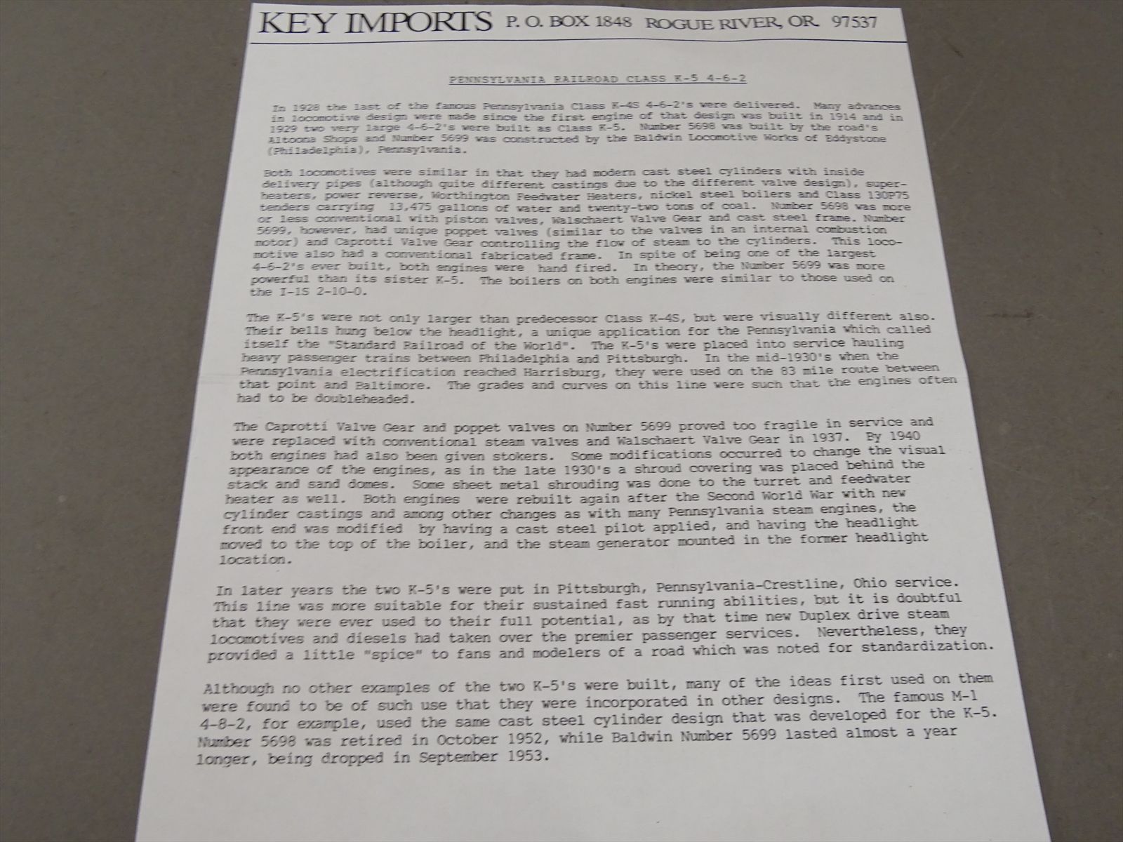 HO Brass Model - Key PRR Pennsylvania 4-6-2 K-5 Pacific #5699 Post War - DCC + Sound - F/P - 1993 Run - Yulim