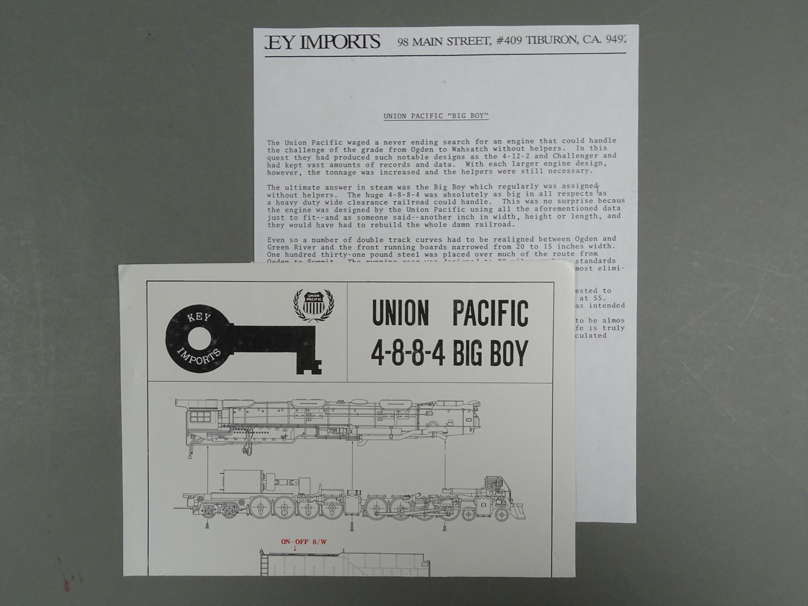 O Brass Model - Key Imports CS#66 UP Union Pacific 4-8-8-4 Big Boy #4020 - F/P - 1989 Run - Samhongsa