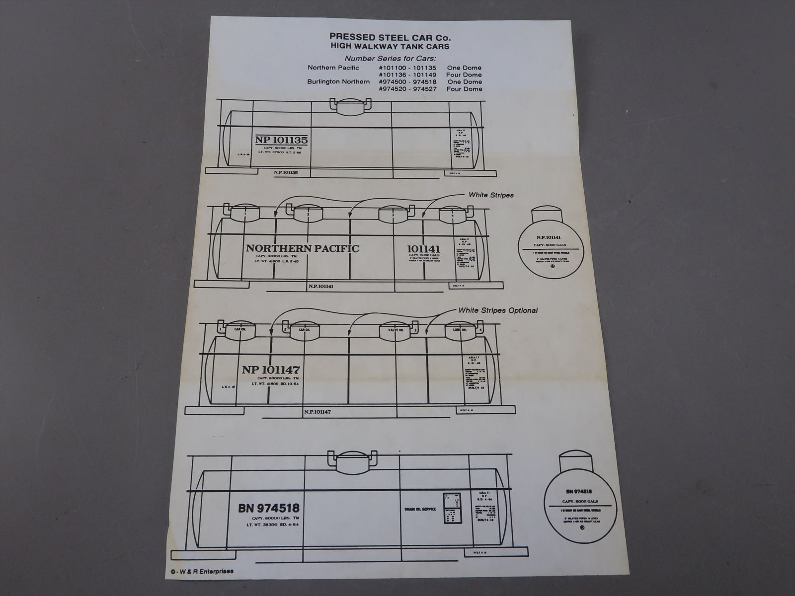 HO Brass Model - W&R Pressed Steel Car Co. High Walkway Tank Car Four Dome 8000 Gallon - Unpainted - 1997 Run - Made in Korea