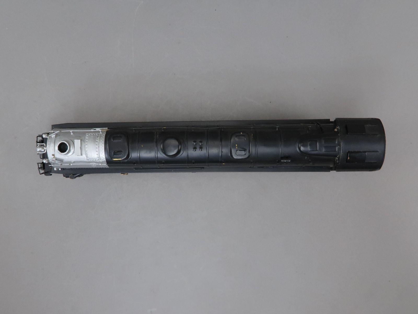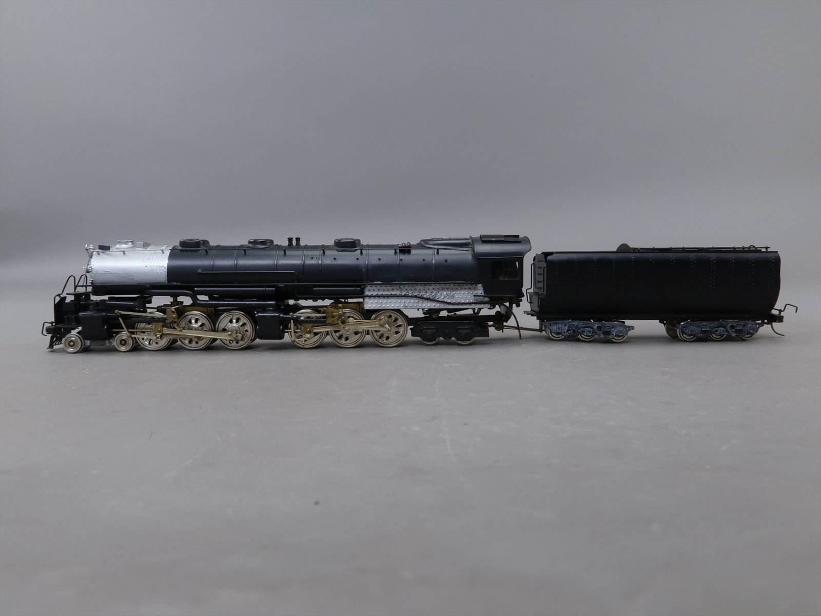 - Notes: There is a lot of handwork on this model. Mislabeled 'Big Boy' instead of a challenger, would have been a likely mistake. The model does have a lot of paint chips.Oil tender is missing the front deck/steps. Interesting front articulation and the fact that all main drivers are powered. Original foam in the box is deteriorating, the model will ship outside the wood box. Great piece of history. A few things make it special in our eyes, to the best of our understanding this is an original balsa wood box, very unique. This model is in good overall condition considering the age and rarity of the model. This model came from a collector that purchased these all in Japan when he was stationed there as a GI.