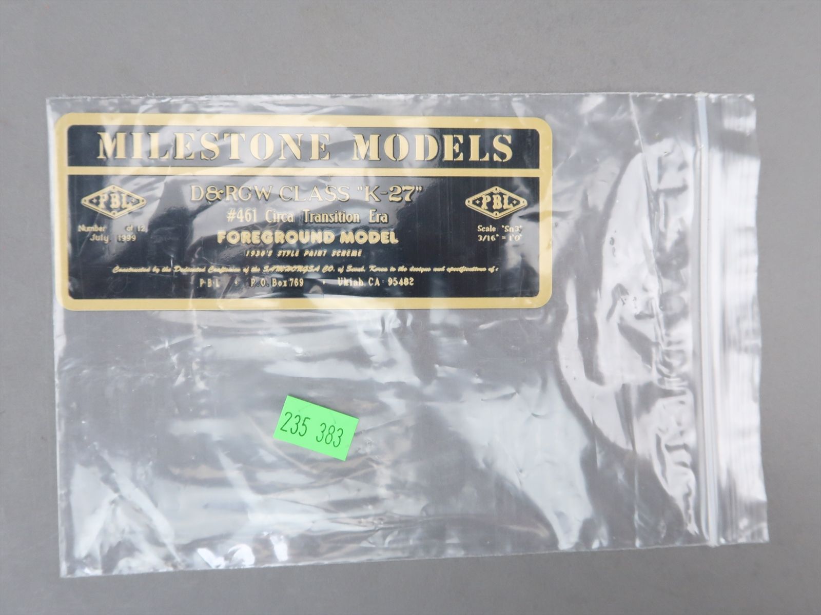 Sn3 Brass Model - PBL Milestone - D&RGW Rio Grande K-27 2-8-2 #461 Transition Era Foreground Model - F/P + PBL Sound + Weathered - 1999 Run - Samhongsa