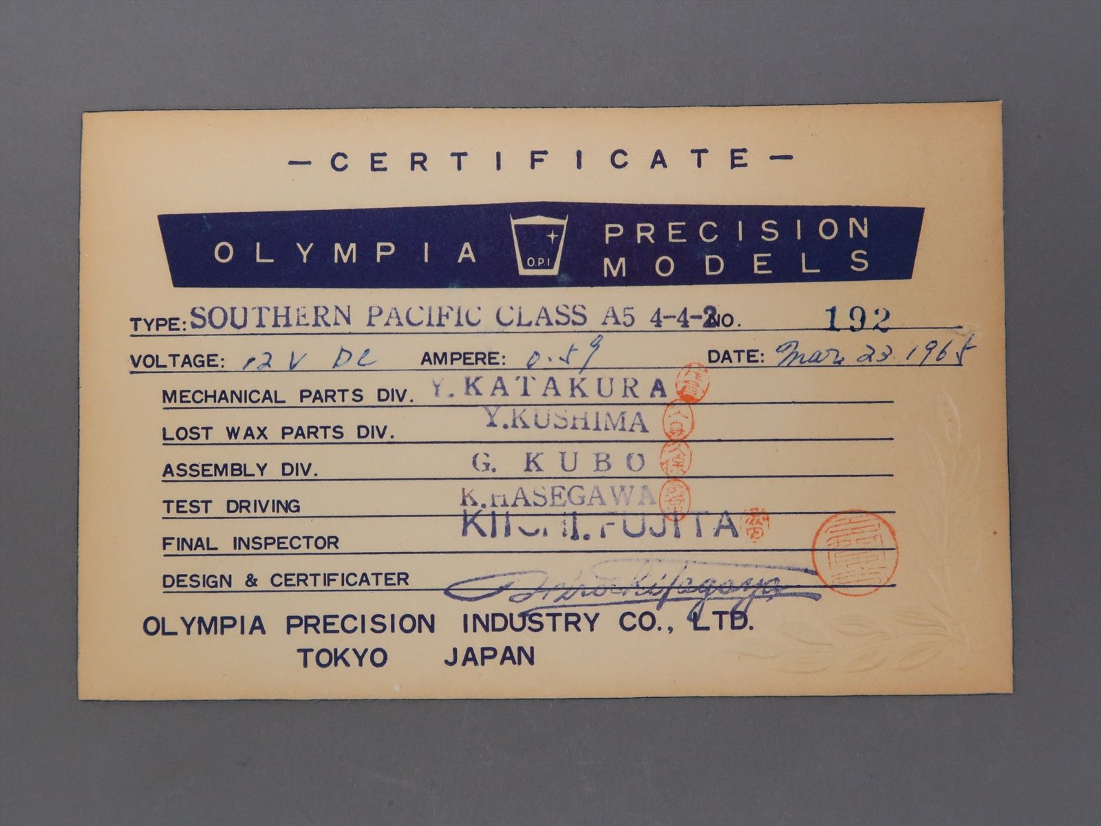 HO Brass Model - Gem SP Southern Pacific 4-4-2 A5 Atlantic - Unpainted - 1965 Run - Olympia