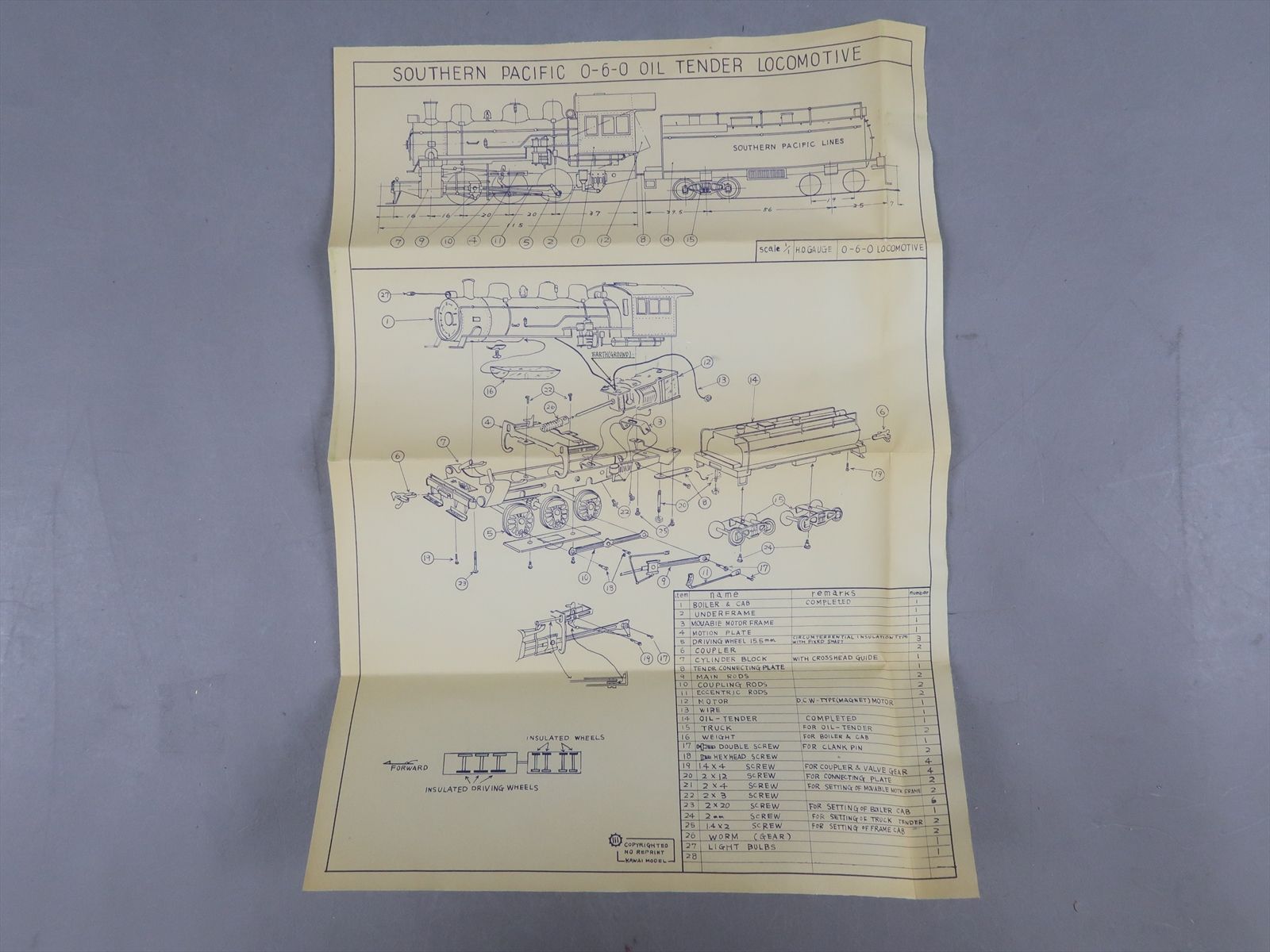 HO Brass Model - Kawai Model SP Southern Pacific 0-6-0 Kit - Unpainted - Made in Japan