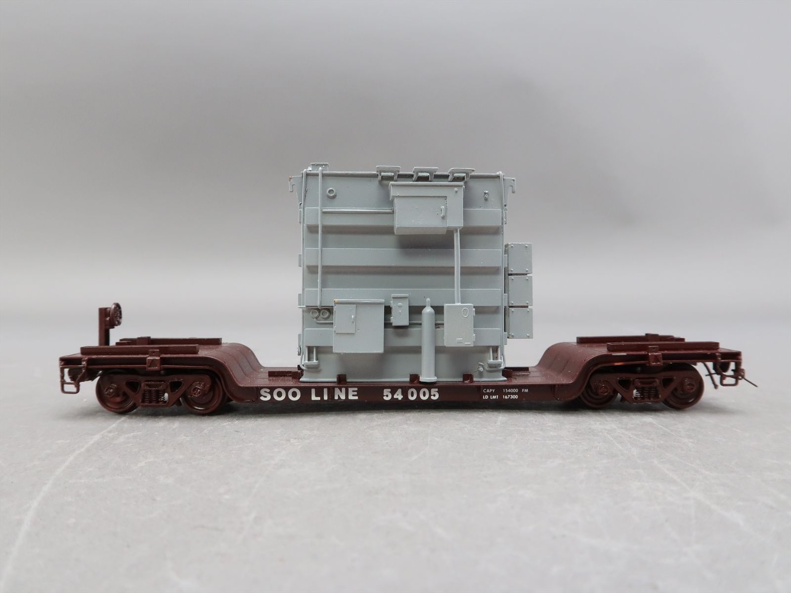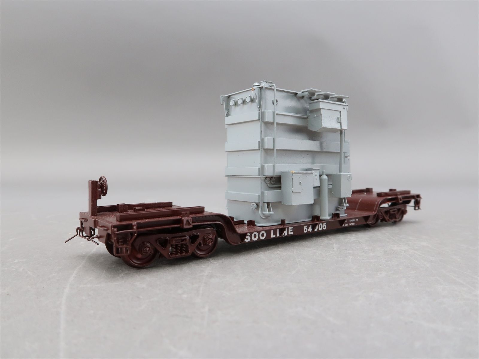 HO Brass Model - OMI 1347 Soo Line Center Flatcar Flat Car w/ Transformer Load #54005 - Custom - 1983 Run - M.S. Models