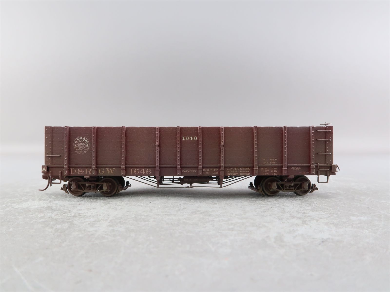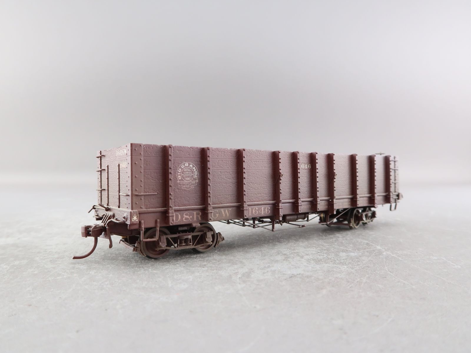Sn3 Brass Model - Pecos River D&RGW Rio Grande High Side Gondola #1646 - Custom + Weathered - 1989 Run - Gangsan