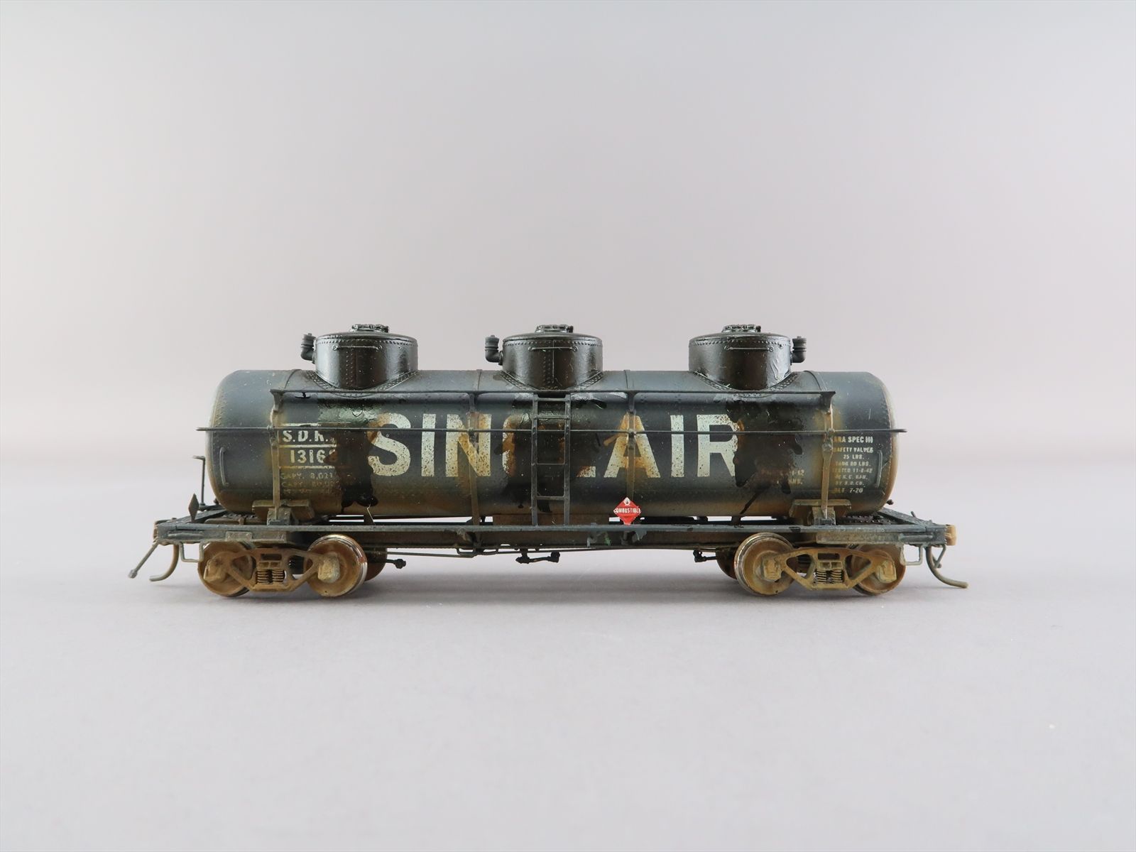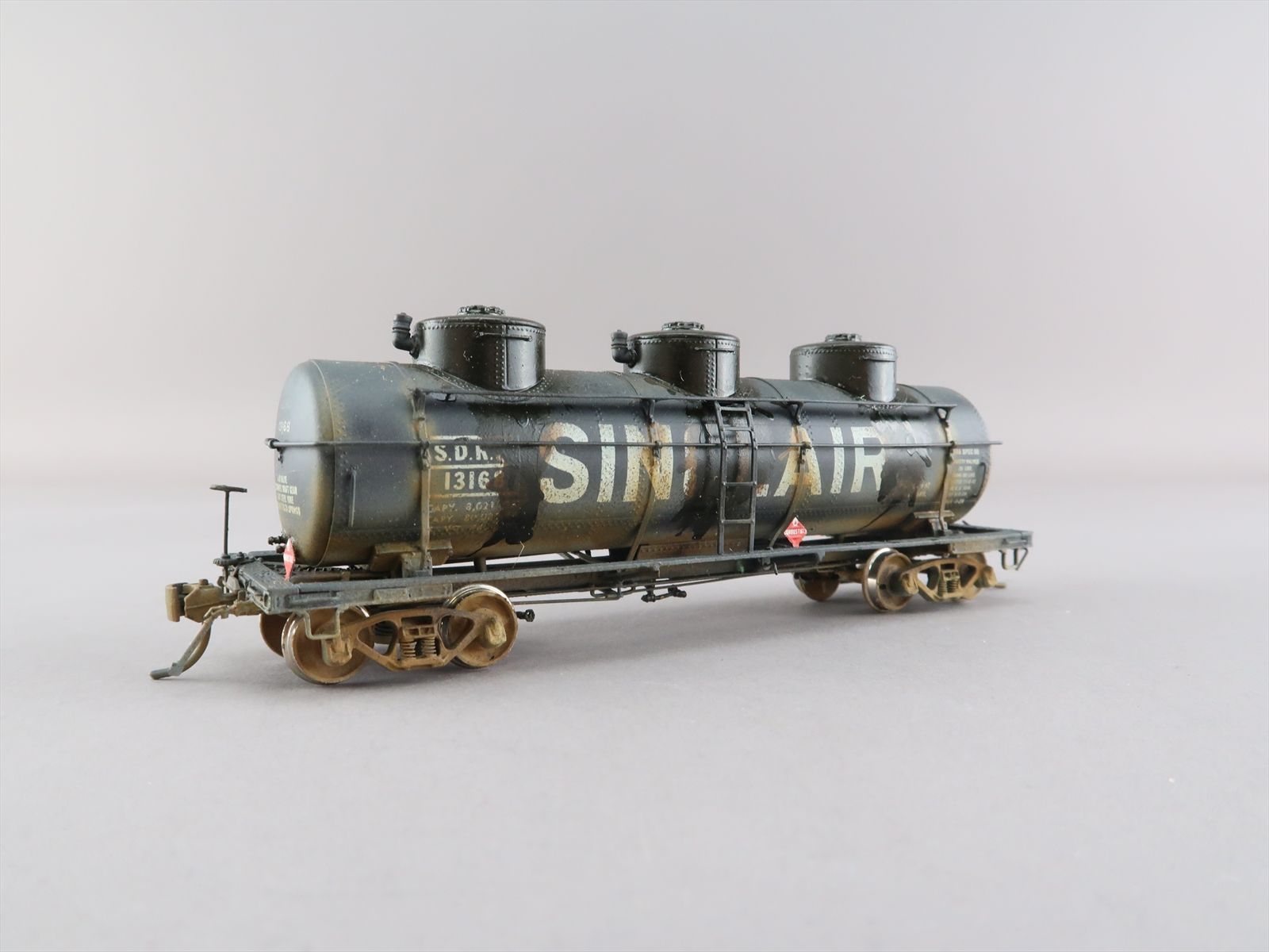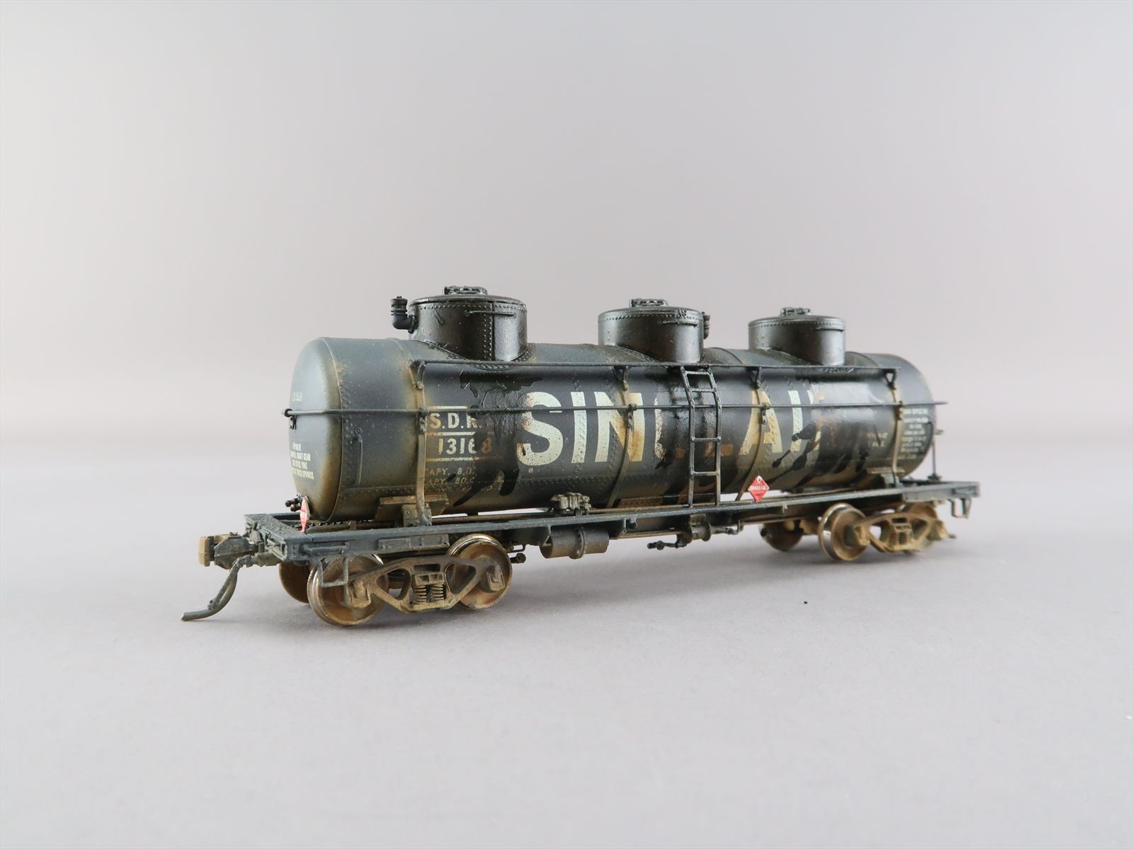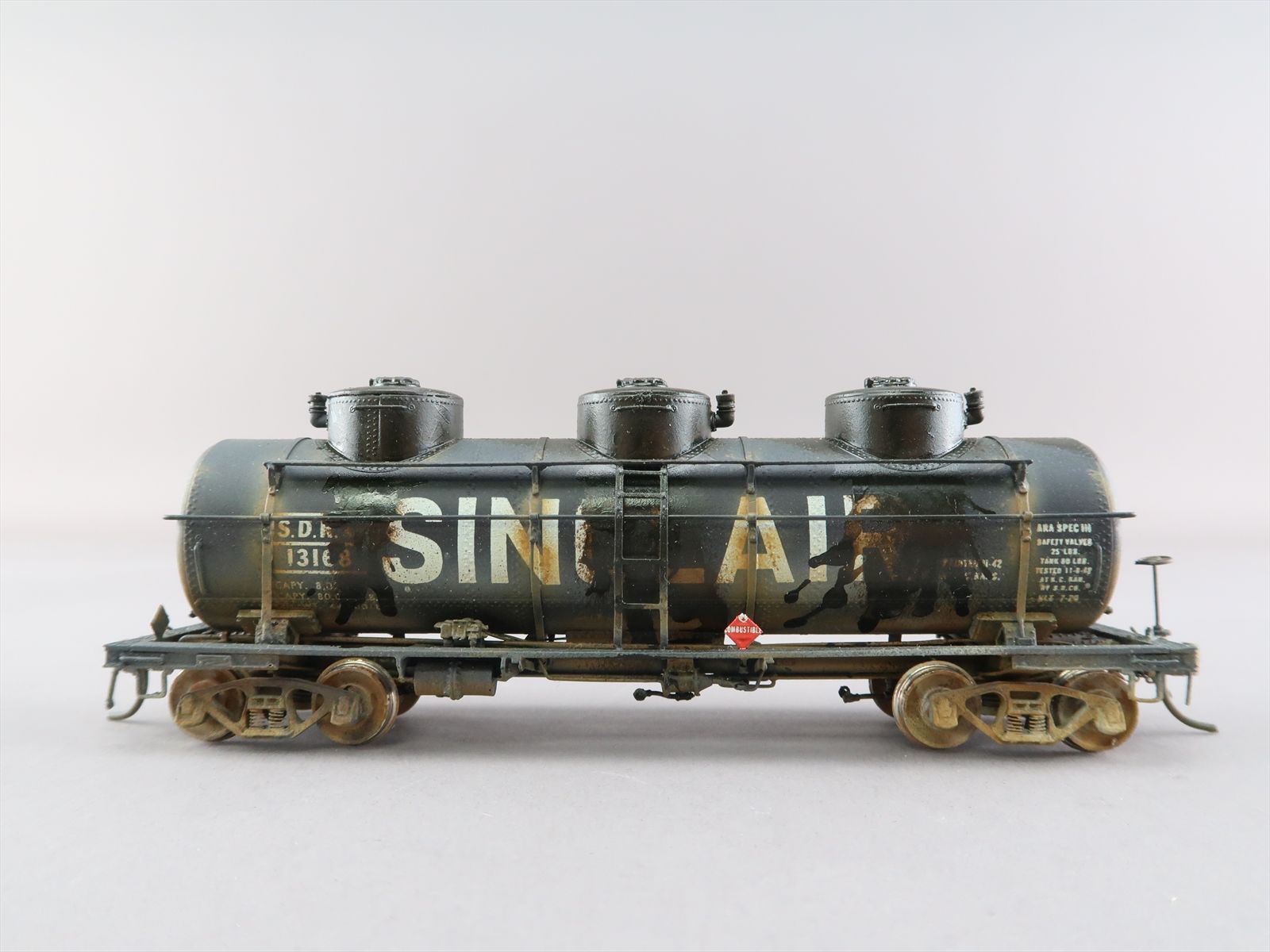HO Brass Model - OMI 3132 SDRX ACF Triple Dome Tank Car #13168- Custom + Heavily Weathered - 1988 Run - Ajin