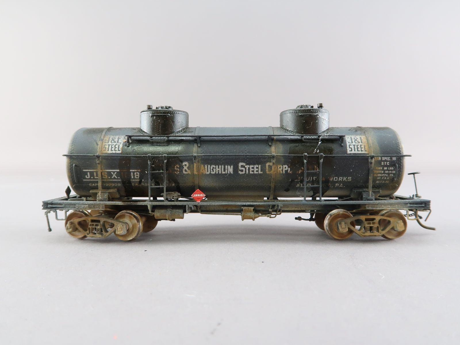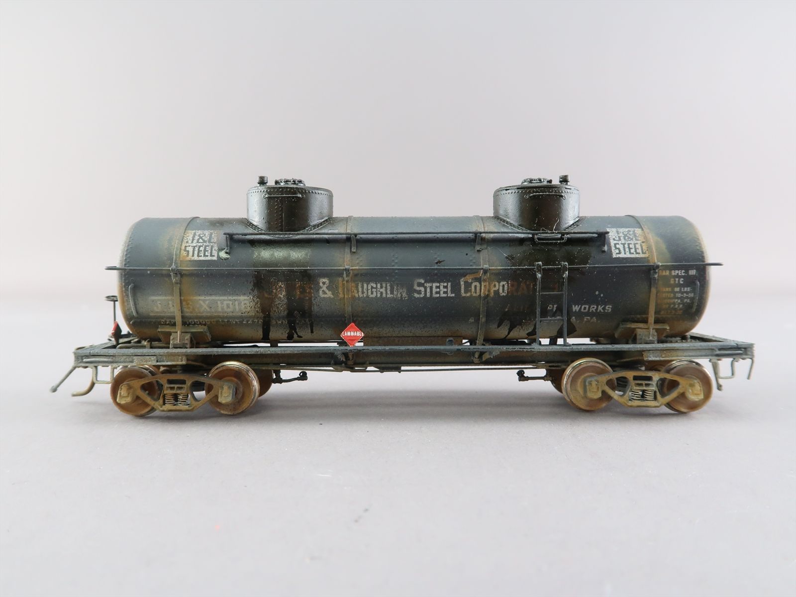 HO Brass Model - OMI 3131 Jones & Laughlin ACF Double Dome 8000 Gallon Tank Car #1018 - Custom + Weathered - 1988 Run - Ajin