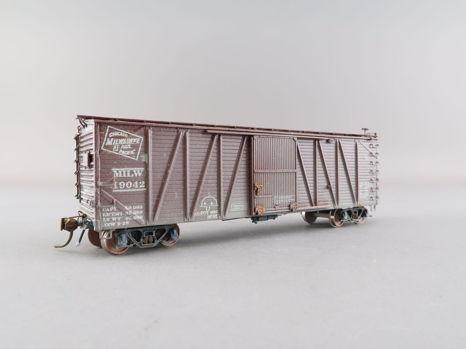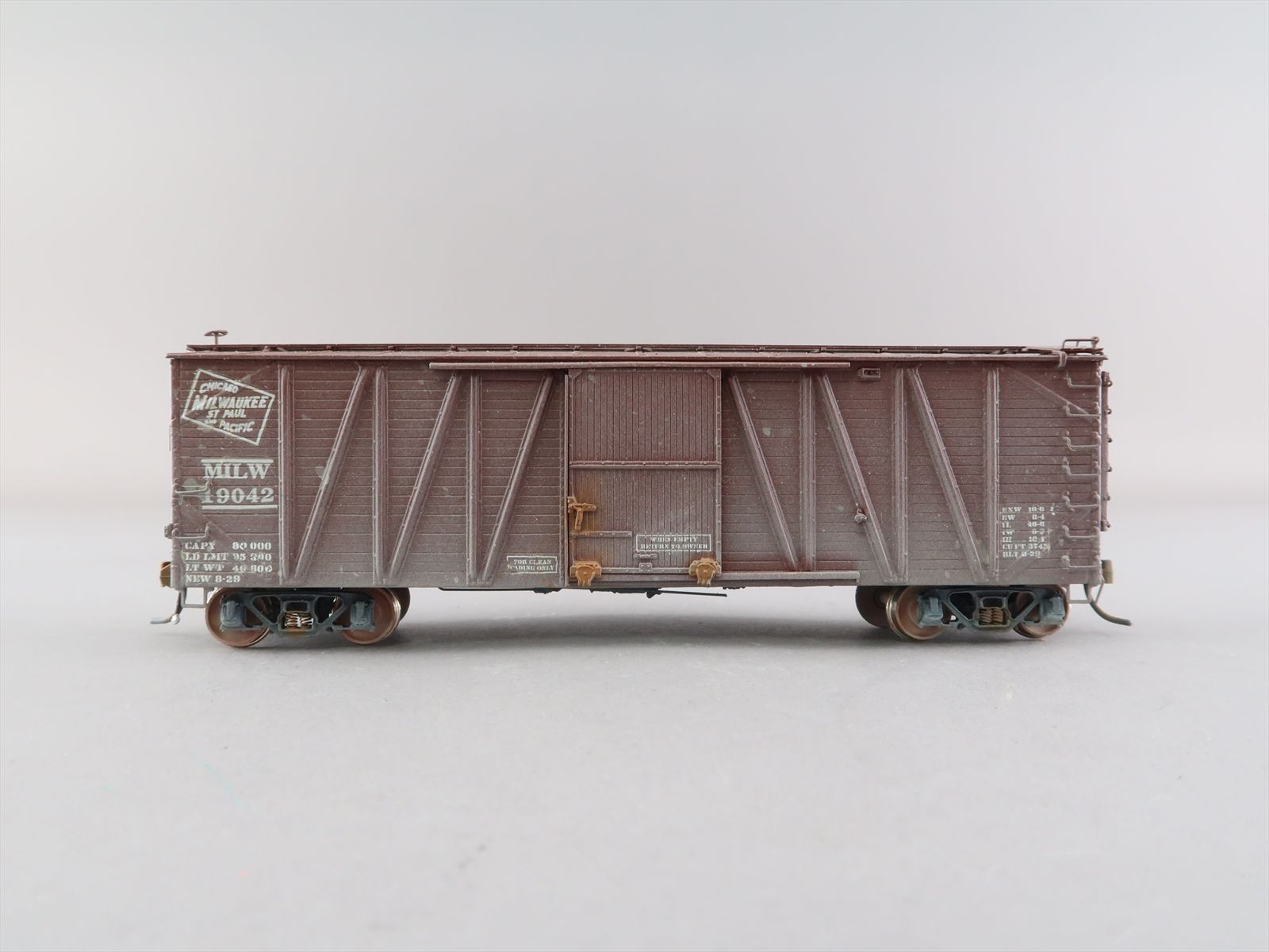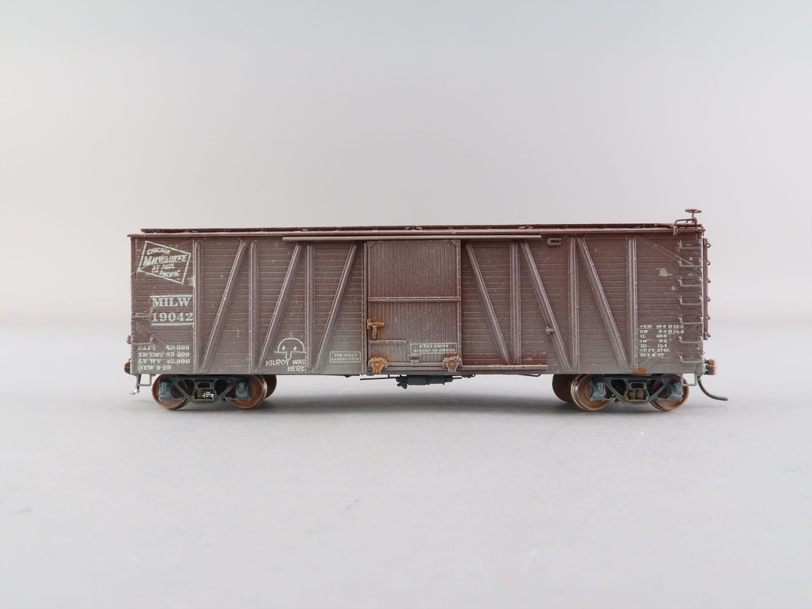 HO Brass Model - OMI 3098 USRA as Milwaukee Single Sheath Boxcar w/ Wood Door #19042 - Custom + Weathered - 1987 Run - Ajin