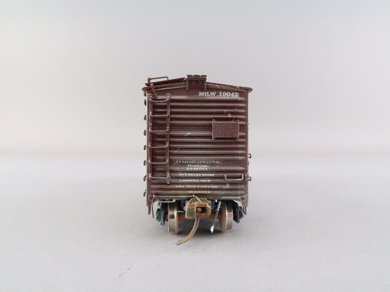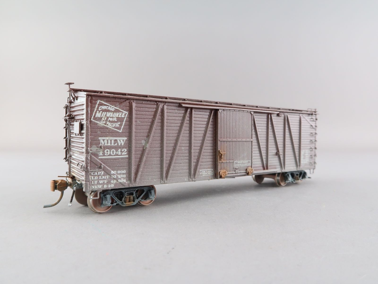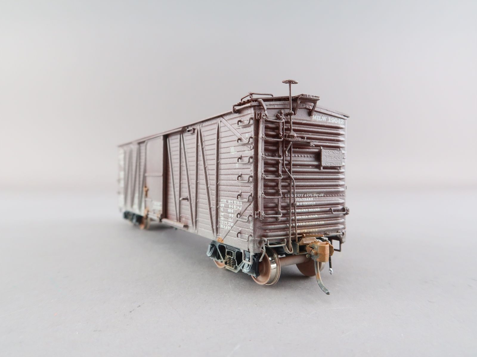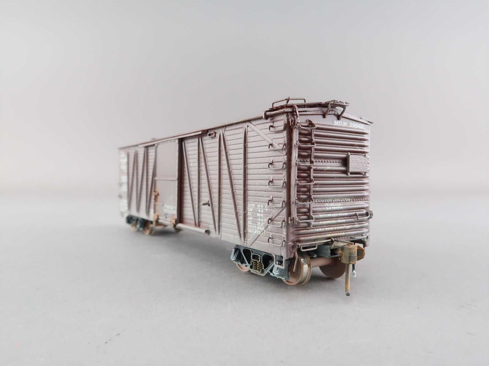HO Brass Model - OMI 3098 USRA as Milwaukee Single Sheath Boxcar w/ Wood Door #19042 - Custom + Weathered - 1987 Run - Ajin