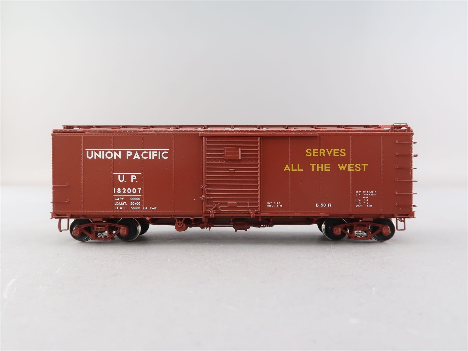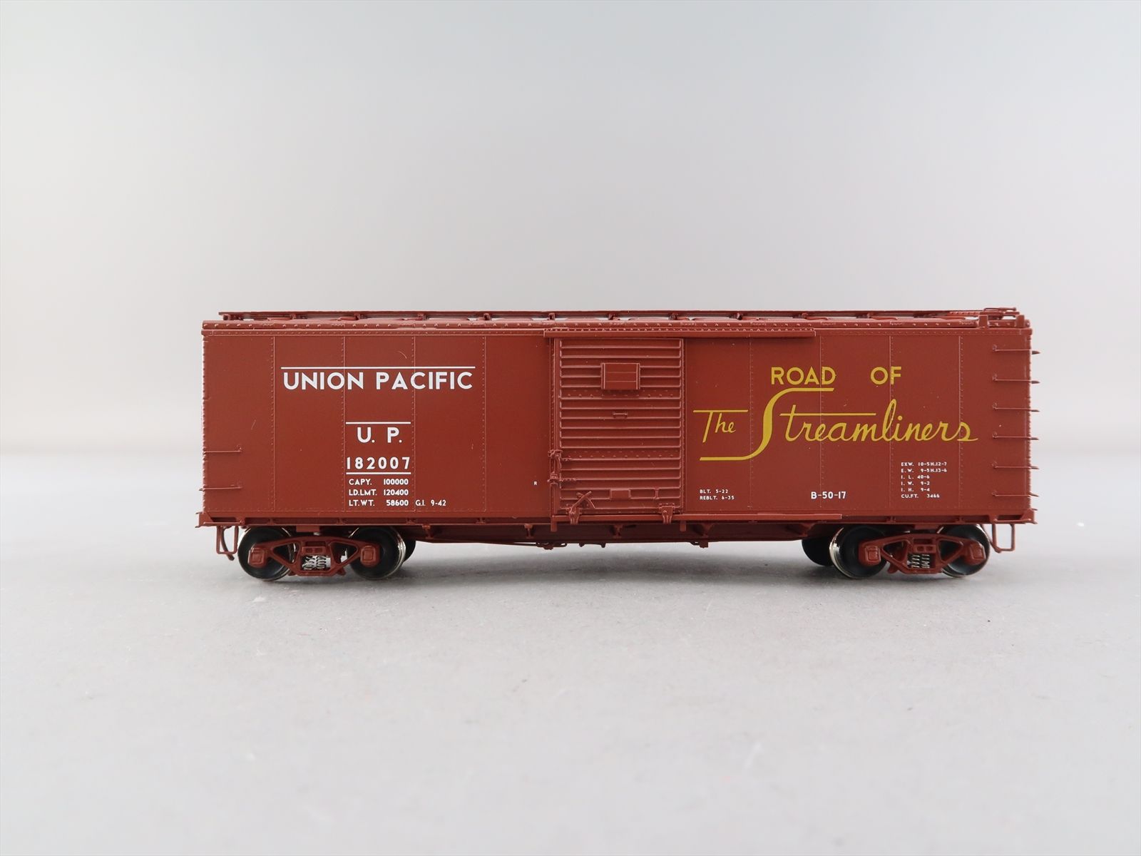 HO Brass Model - CIL 2408.2 UP Union Pacific B-50-17 Steel Side Rebuilt Boxcar #182007 - F/P - 2001 Run - The Car Model Co.