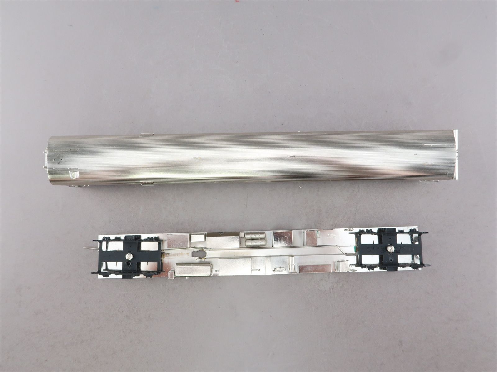 Notes: The chassis is detached from the body and the screws are missing. Trucks are included but not installed. Sold as shown.