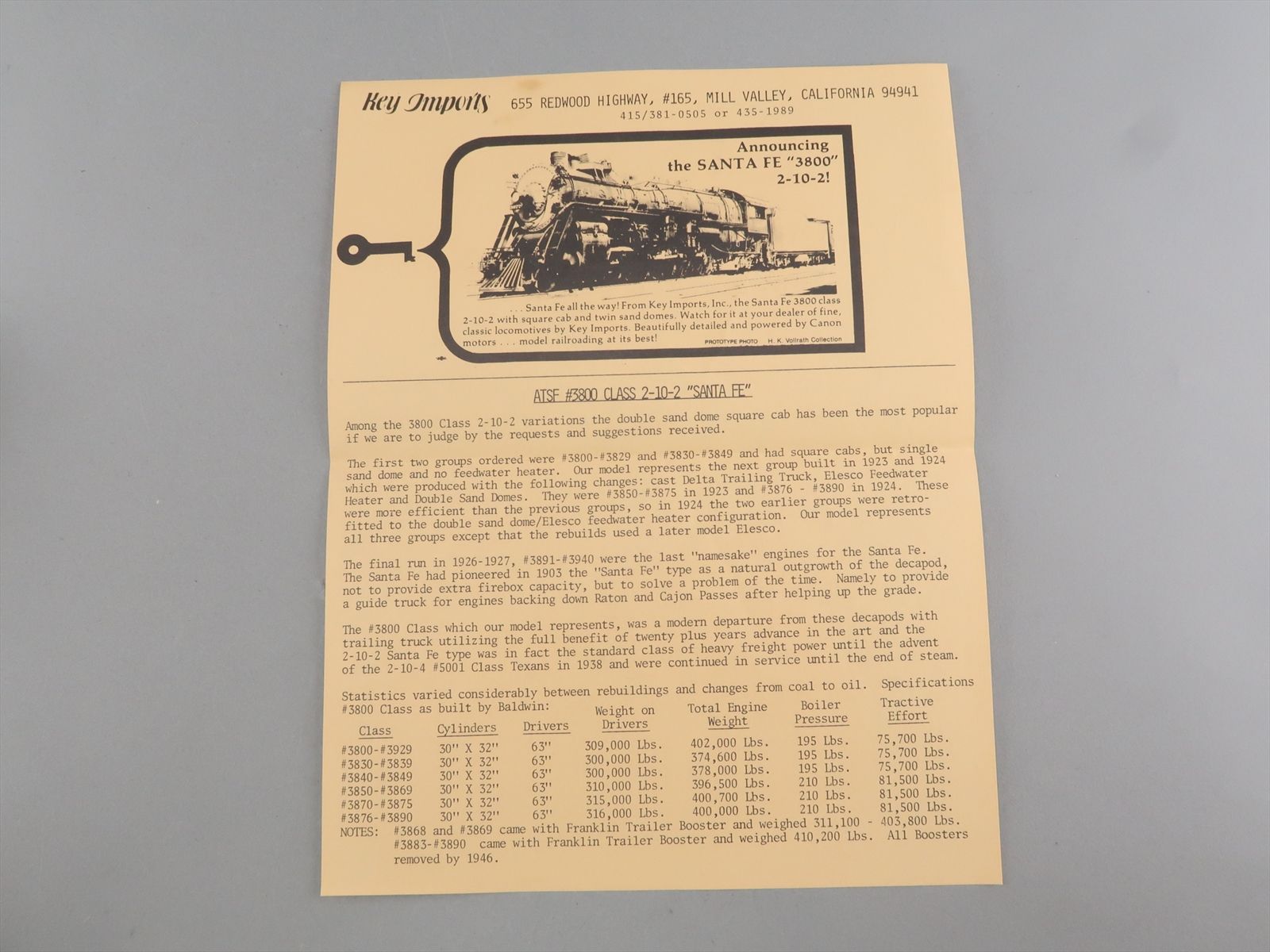 HO Brass Model - Key AT&SF Santa Fe 2-10-2 3800 Class - Unpainted - 1979 Run - Samhongsa
