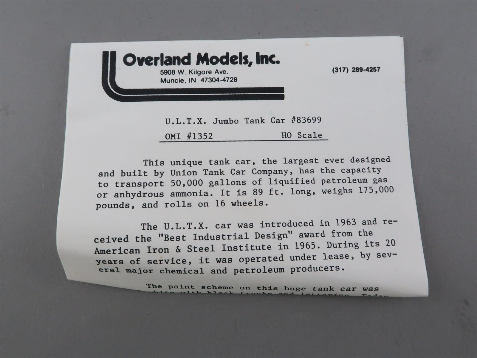 HO Brass Model - OMI 1352 UTLX Jumbo Tank Car #83699 91'-7" - Unpainted - 1987 Run - Ajin
