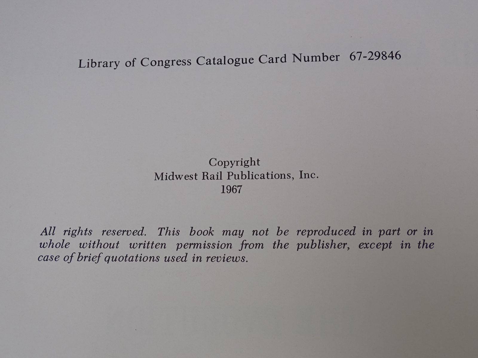 Copyright 1967 - Published by Midwest Rail Publications Inc.