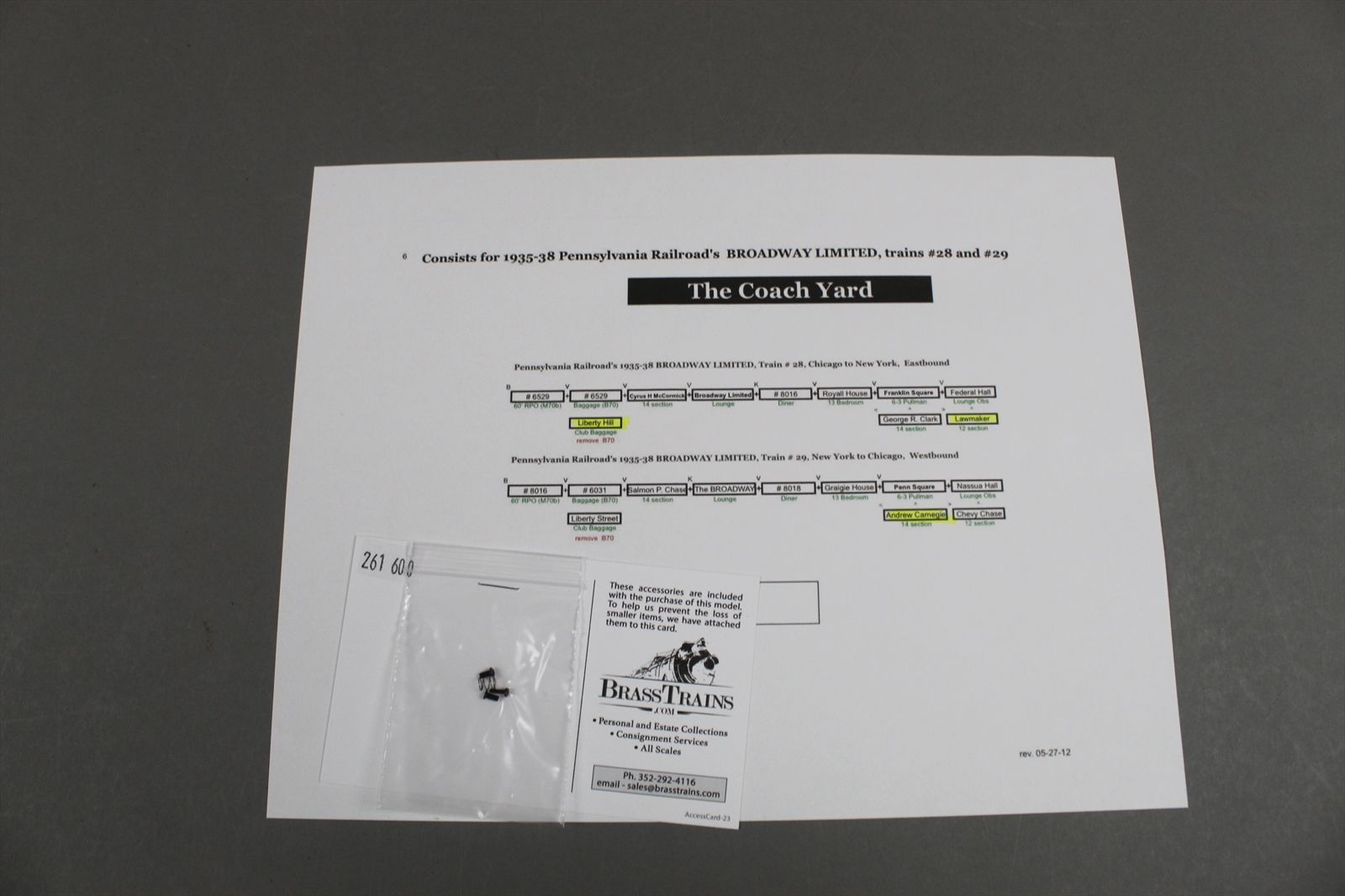 Notes: FACTORY PAINTED -PRR 1935 BROADWAY LIMITED-ADD PSCM 3 CAR ADD-ON, CLUB BAG (PWD)+12