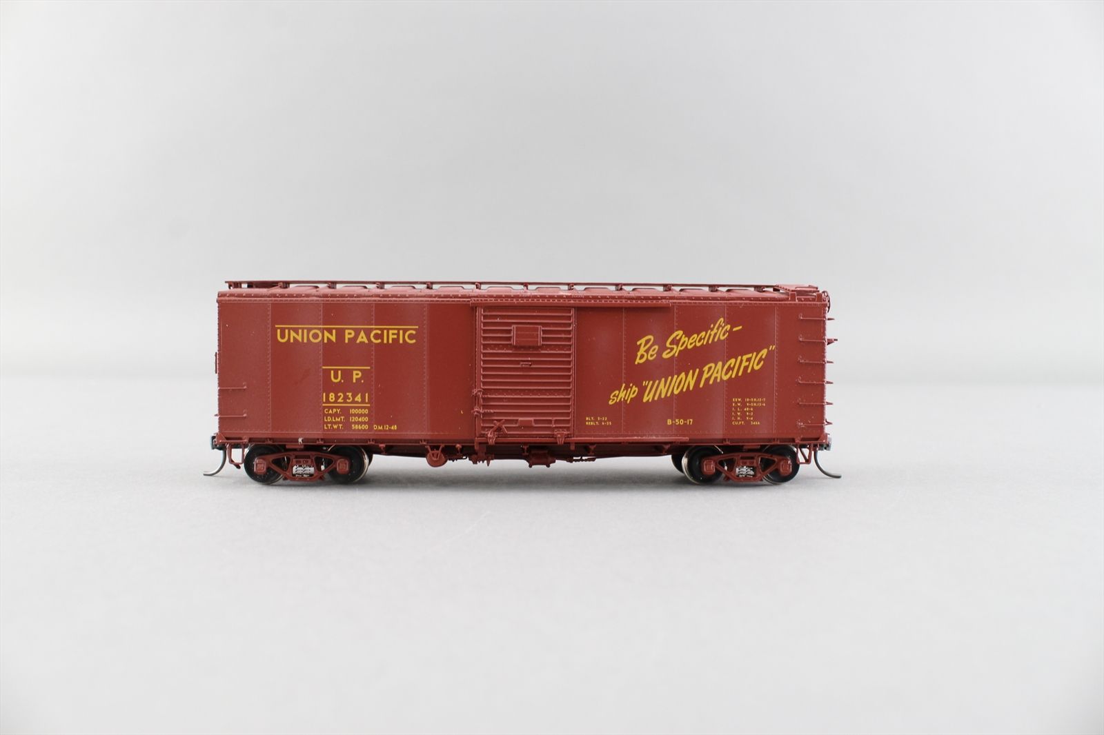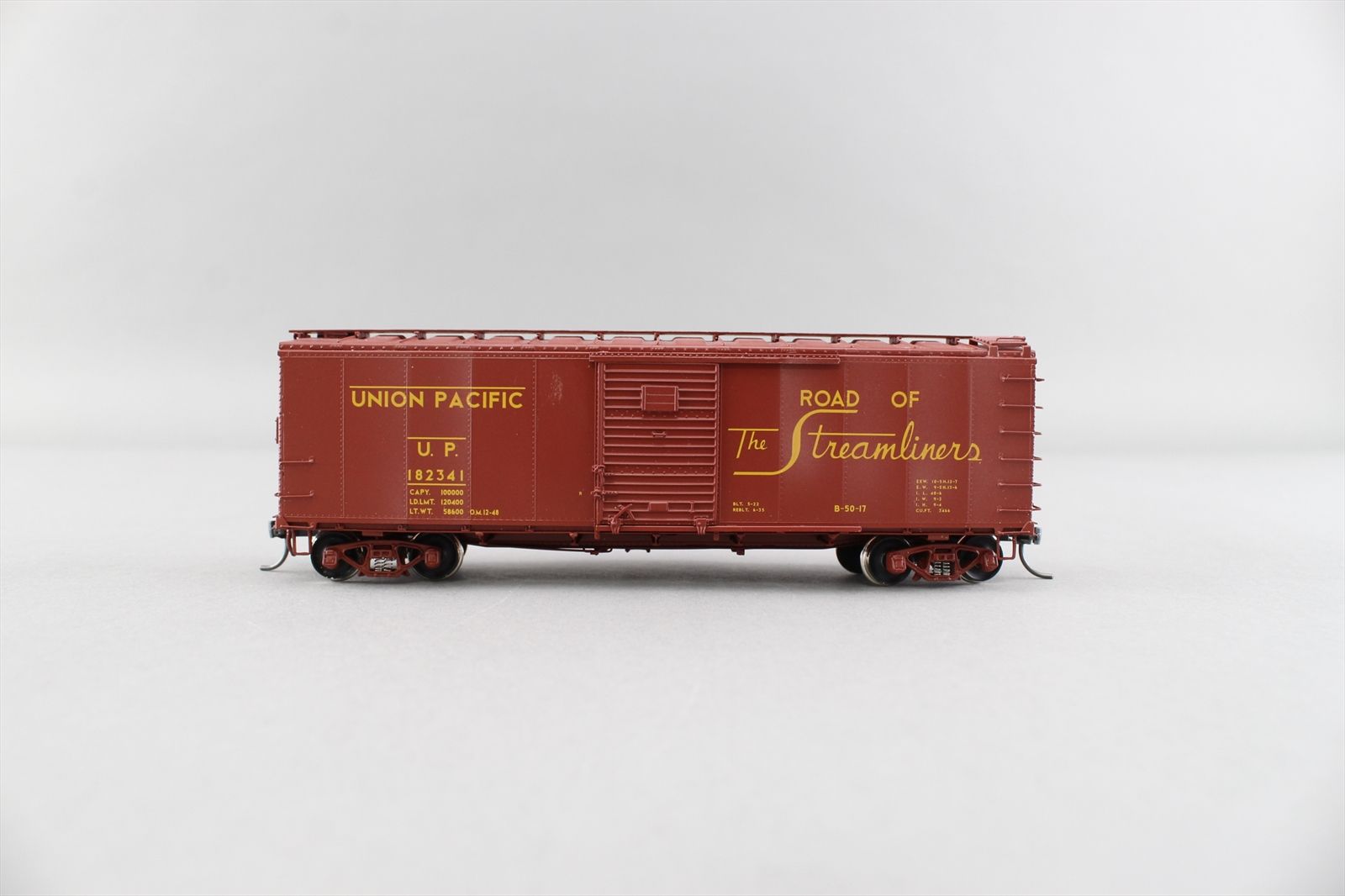HO Brass Model - CIL 2408.3 UP Union Pacific B-50-17 Steel Side Rebuilt Boxcar #182341 - F/P + Lightly Weathered - 2001 Run - The Car Model Co.