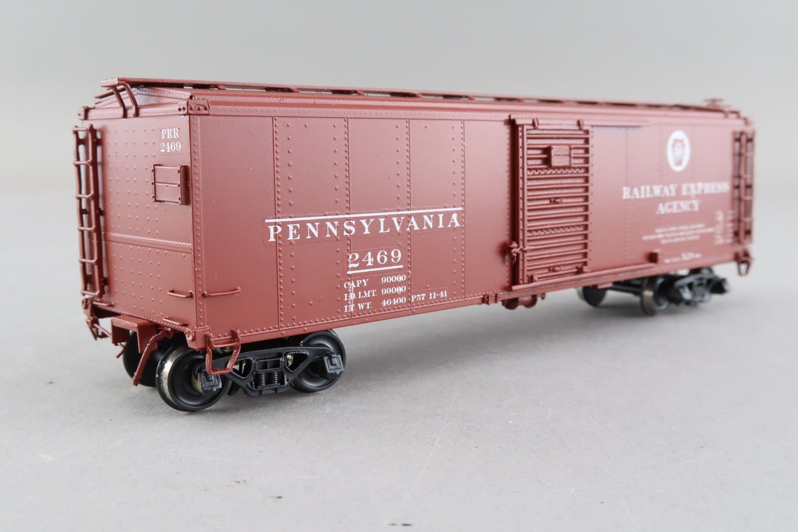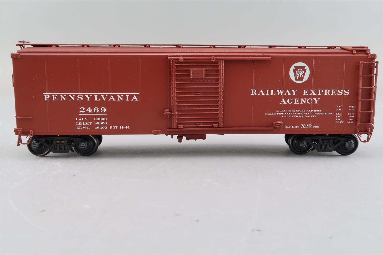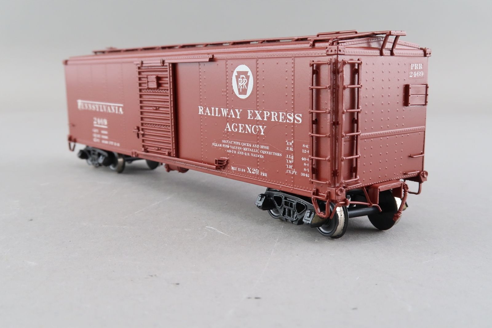 HO Brass Model Train - OMI 3013 PRR Pennsylvania X-29 Boxcar Corrugated Doors Plain Ends #2469 - Custom - 1984 Run - M.S.