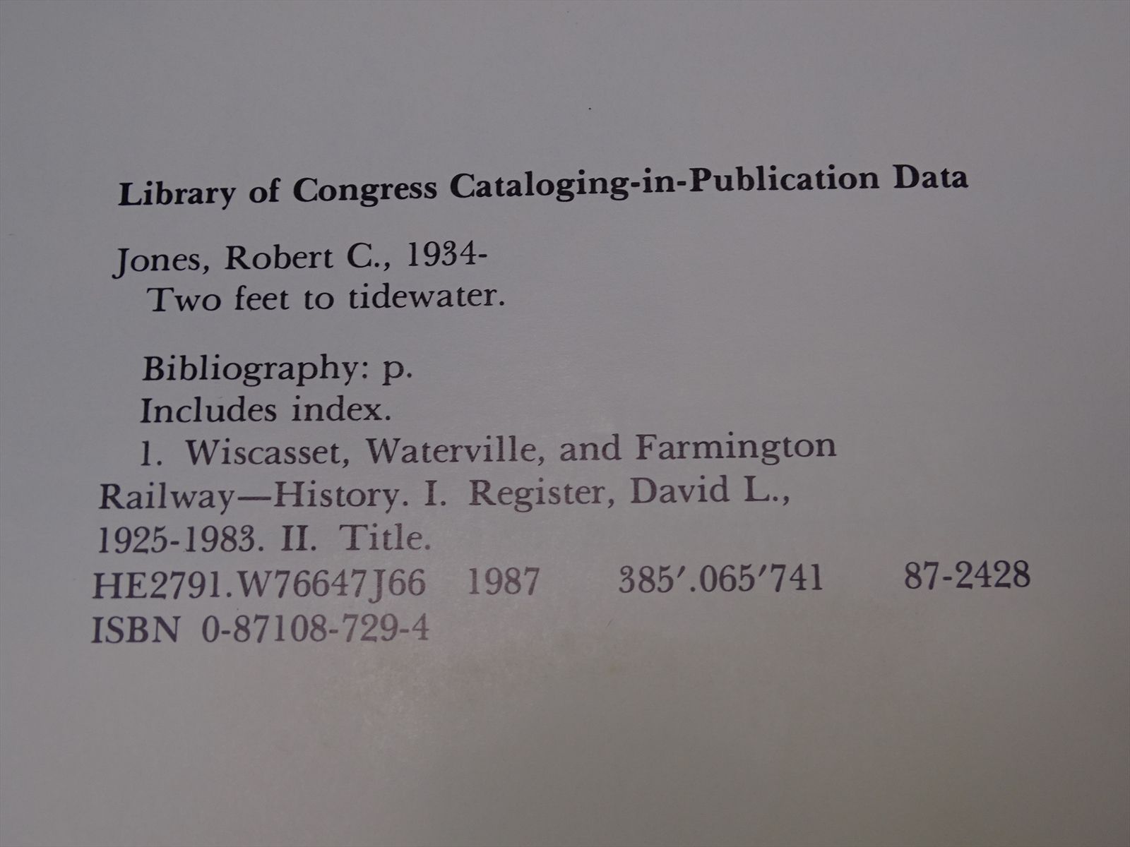 Railroad Book - Two Feet to Tidewater: The Wiscasset, Waterville and Farmington Railway - Robert C. Jones & David L. Register - 386 Pages - First Edition