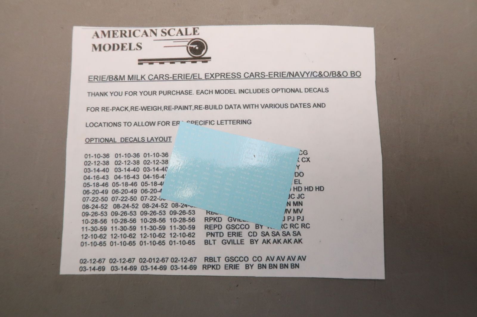 HO Brass Model - ASM American Scale Models ERIE Milk Car #6655 - F/P - 2015 Run - E.K. Models