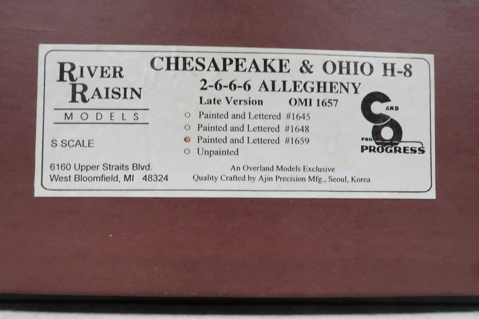 S Brass Model - RRM River Raisin Models OMI 1657 C&O Chesapeake & Ohio 2-6-6-6 Allegheny H8 #1659 - F/P - Ajin