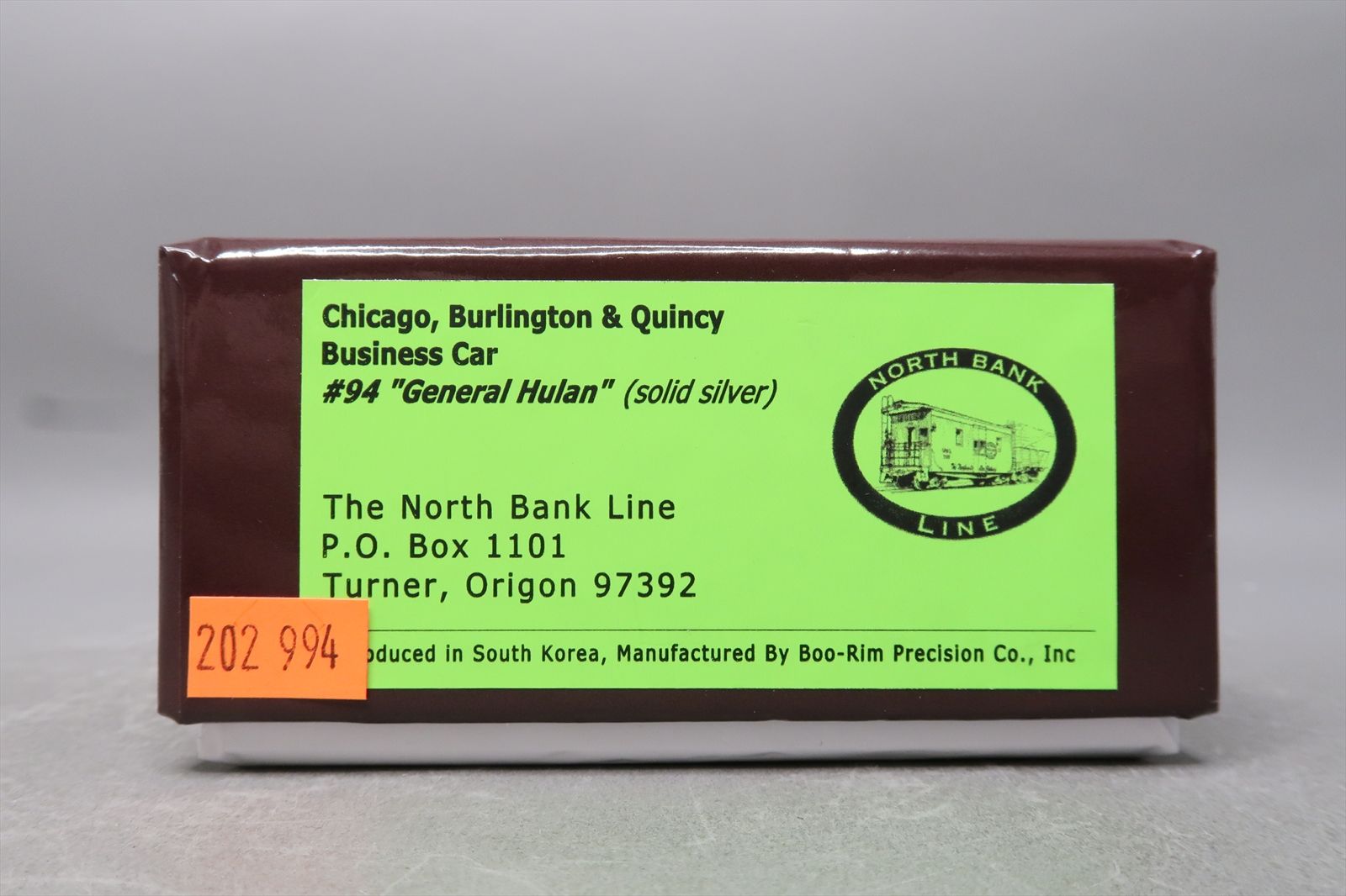 HO Brass Model - NBL CB&Q Burlington Business Car Solid Silver General Hulan #94 - F/P - Boo Rim