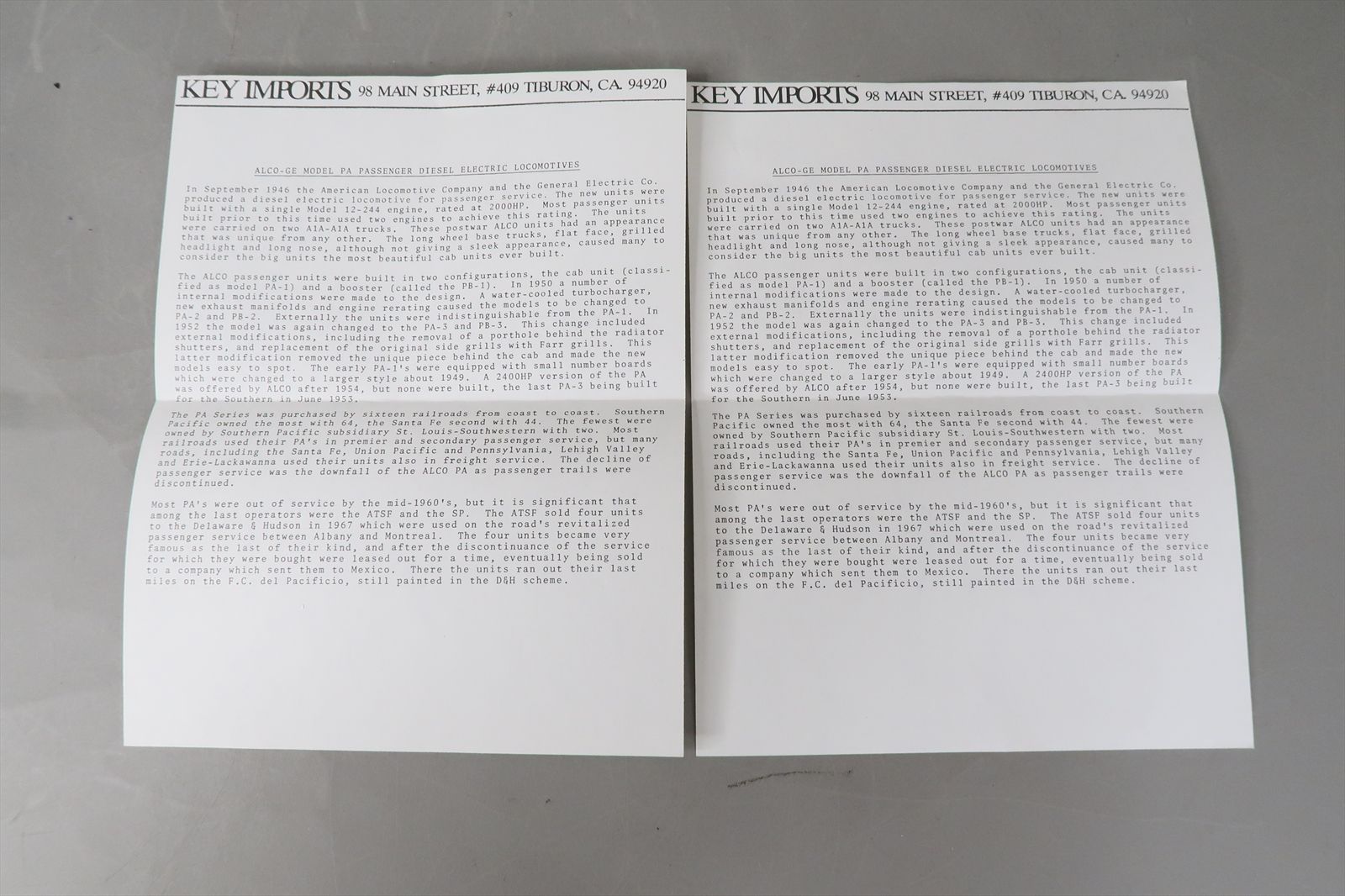 O Brass Model - Key CS#90 SP Southern Pacific ALCO PA-1 PA PB-1 PB Daylight #6006 + #5918 - F/P - 1990 Run - Samhongsa