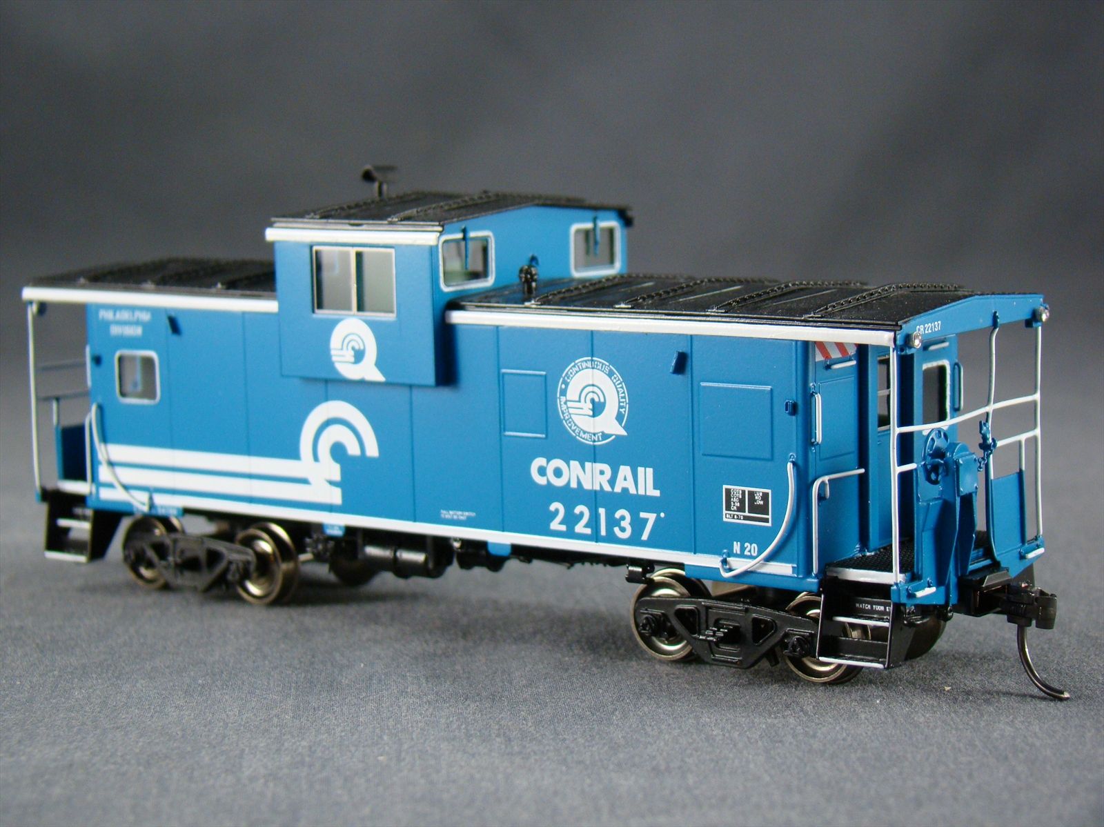 | Notes: | FACTORY PAINTED - "N20" (EX RDG) W-V CABOOSE #22137, CONRAIL BLUE, LETTERED PHILADELPHIA DIVISION AND CONTINUOUS QUALITY IMPROVEMENT LOGO |