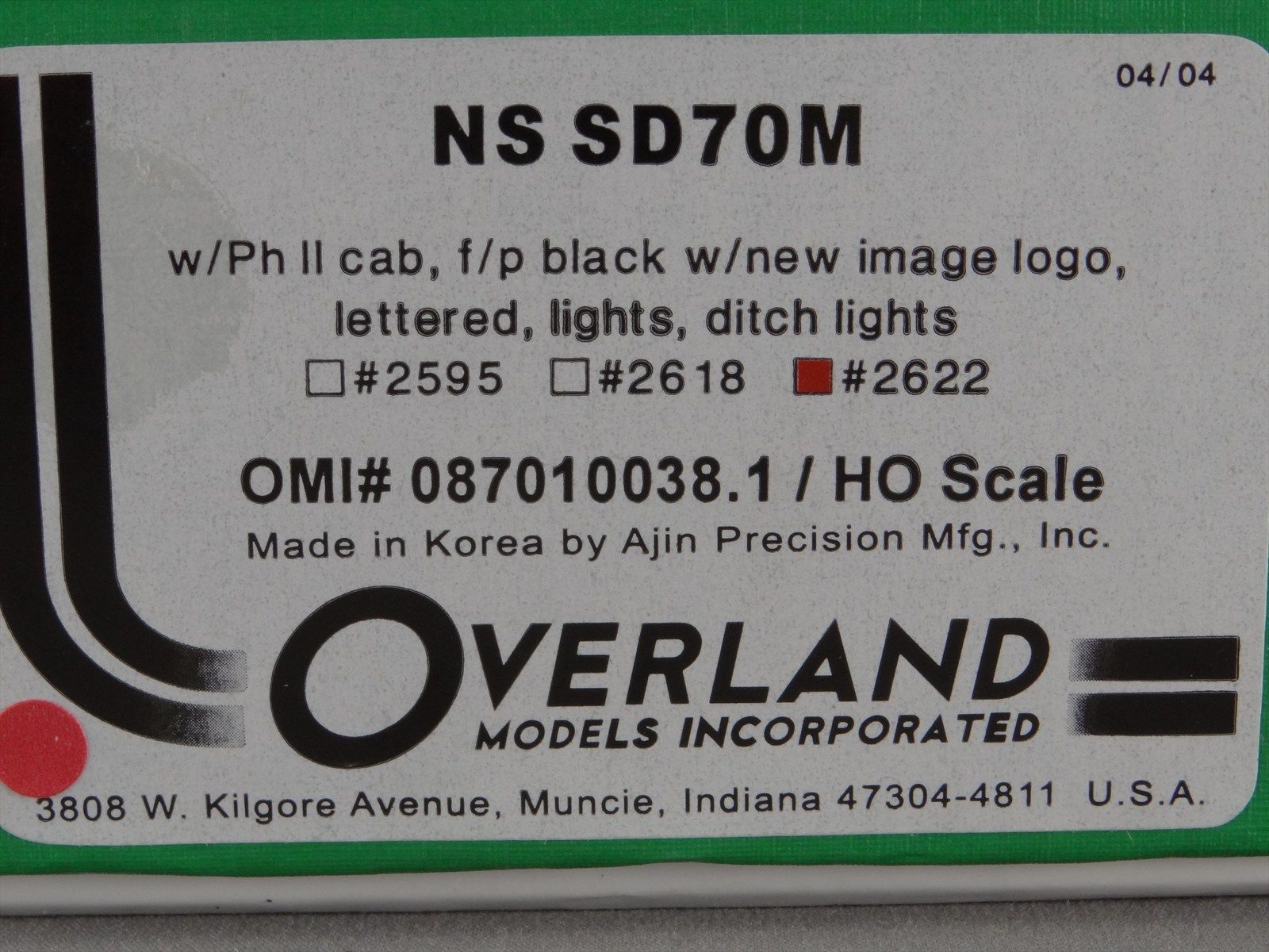 HO OMI #0038.1 Overland NS Norfolk Southern SD70M #2622 - 2004 Run